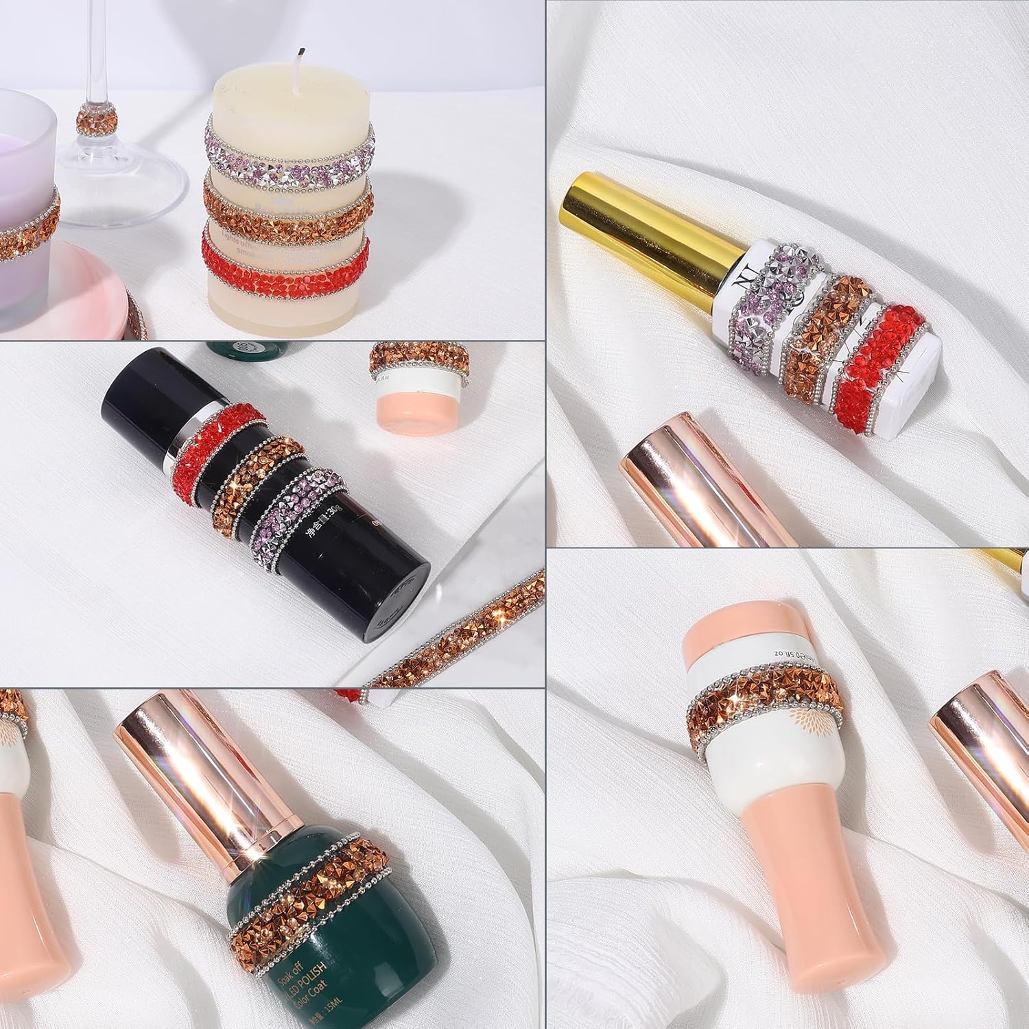 - Wide Applications: The bling rhinestone sticker strip is suitable for many DIY decorations, mirrors, candles, vases, photo frames, costumes, home decor, offices, gardens, cars, personalized phone cases, jewelry boxes, and other places.