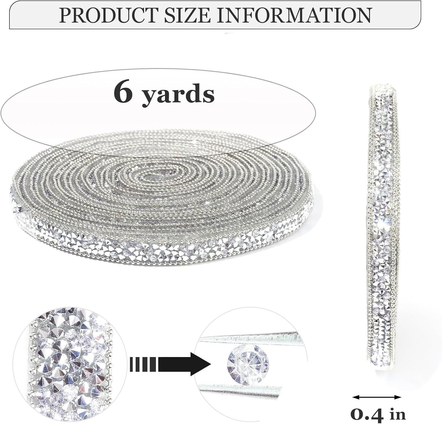 - Silver Rhinestone Ribbon: 1 roll of self-adhesive rhinestone ribbon Sticker, approx 6 yards in length, 1cm/0.4inch in width. (PACKAGE CONTENT)