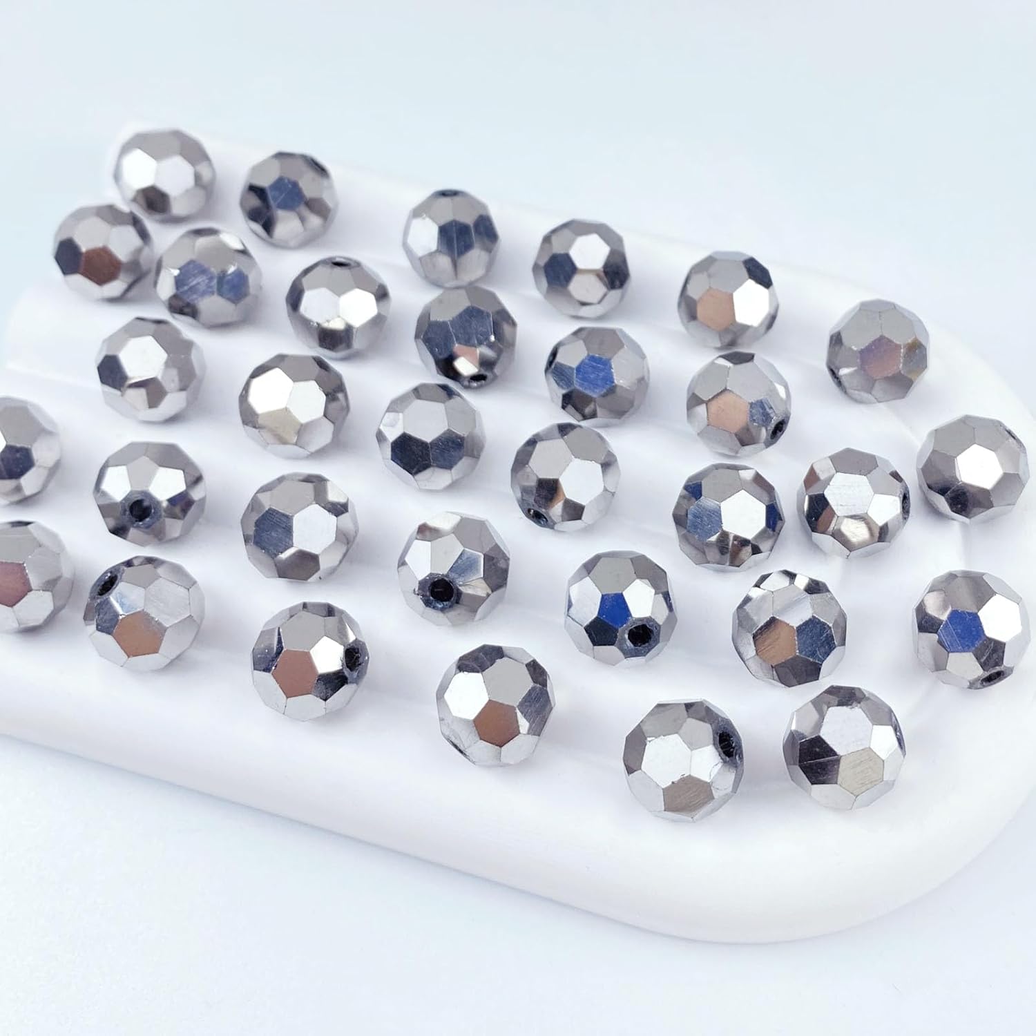 200 PCS 6mm Crystal Glass Beads Round Multiple Faceted Loose Spacer Glass Beads for DIY Handcrafte Bracelet Necklace Earring Jewelry Making(Silver)