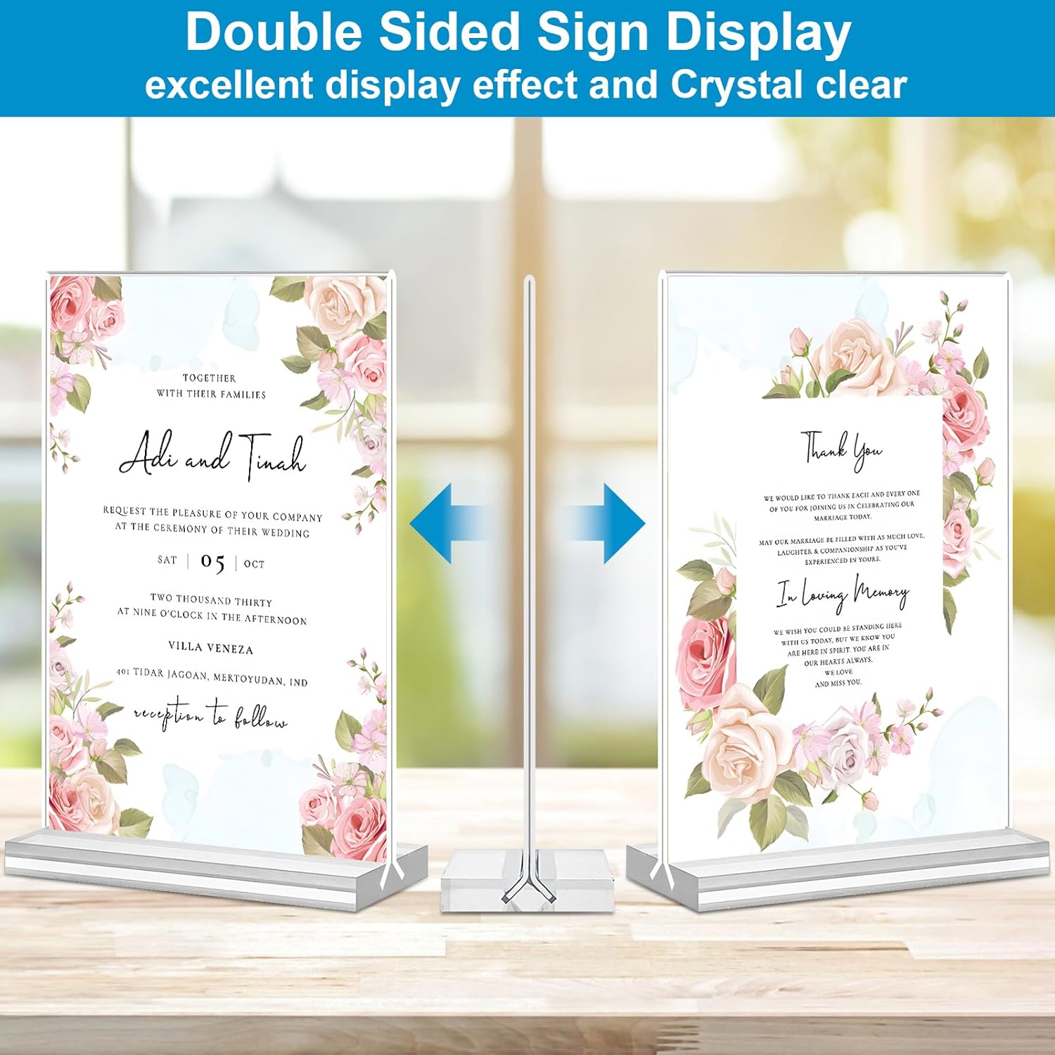 - 【Premium Acrylic Material】Our acrylic sign stands are made of high-quality acrylic plastic glass, which can effectively resist falling. The clear acrylic sign holder will not dim or turn yellow under continuous exposure to the sunlight which offers a superb display effect