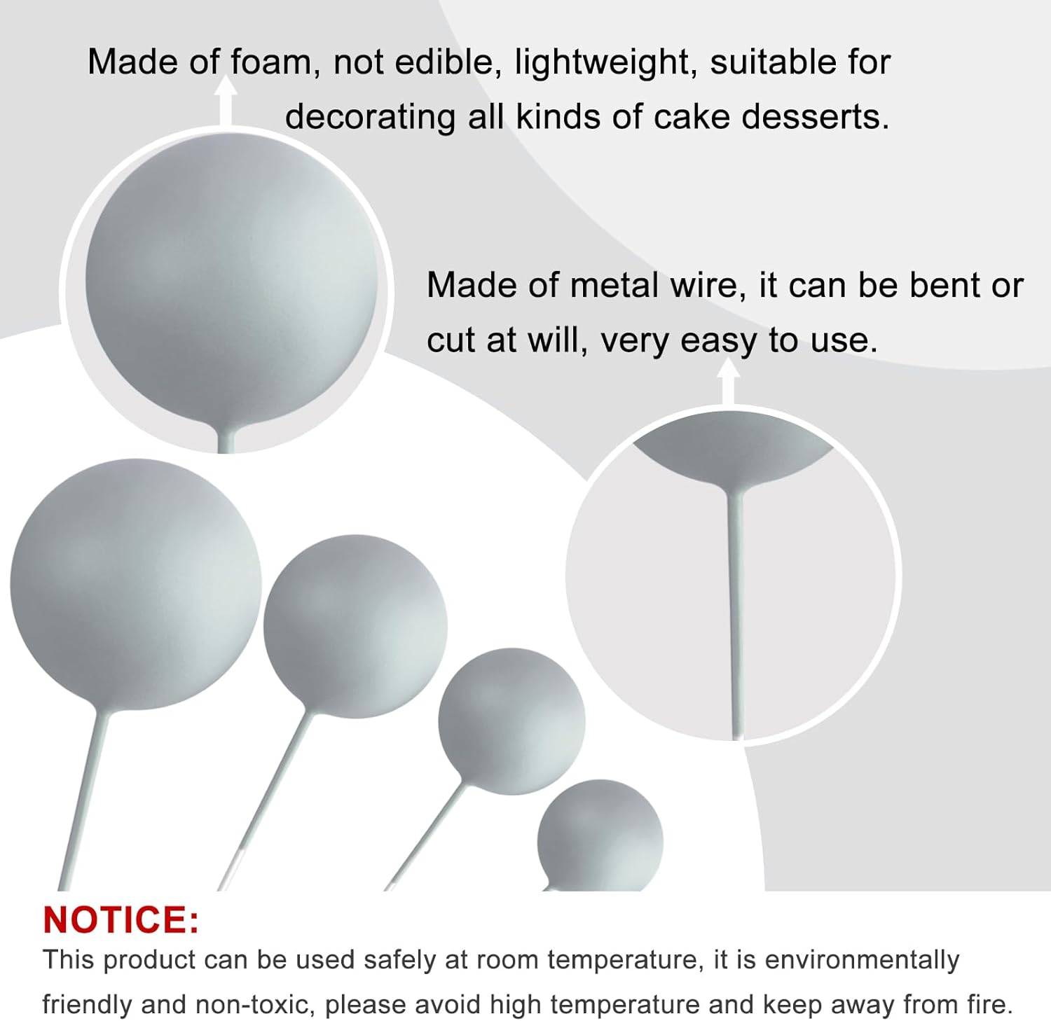 ASTARON 20 Pcs Ball Cake Topper Decorations Mini Balloons Cake Topper Sticks Gray Balls Cake Picks Cake Topper Balls Cake Decorations for Wedding Birthday Cake Decorations