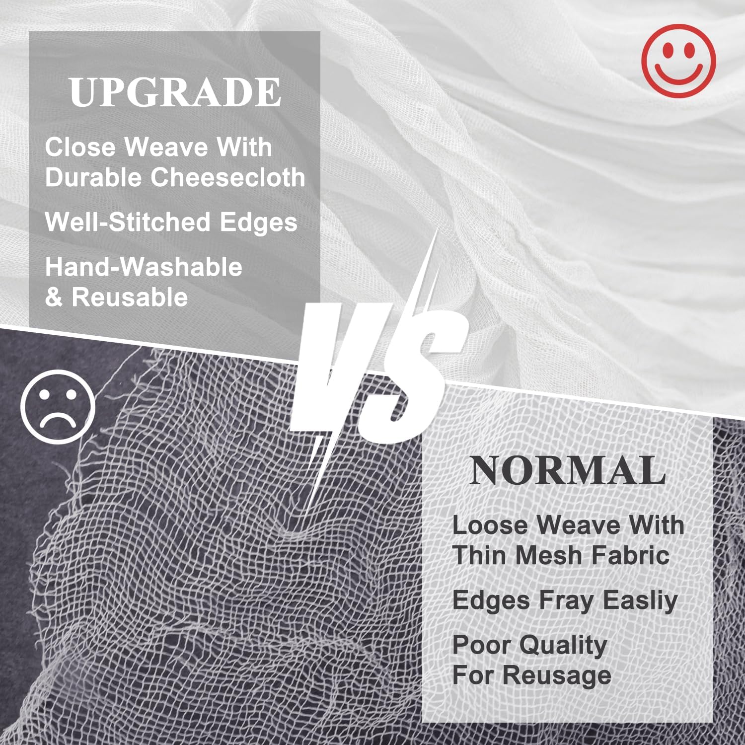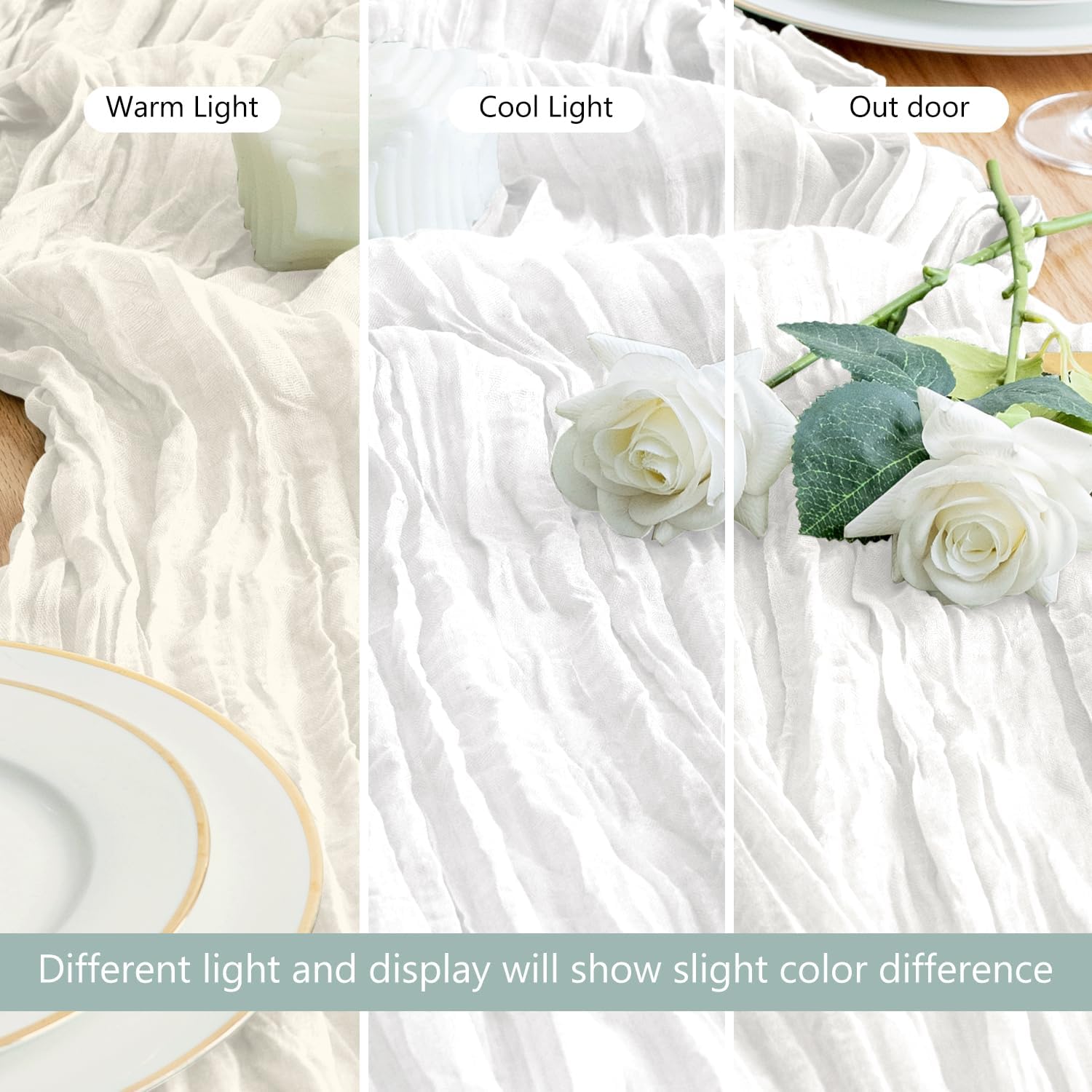 - 【Cheesecloth Table Runner】 Size: 35" W x 120" L. You will get 1 piece 10FT length cheesecloth table runner. The sheer rustic table runner is long enough to span a large table and drape gracefully across the table. It will gently sway in the wind, adding a romantic atmosphere to your occasion. These eye-catching gauze table runners are ideal for arranging an elegant, stylish tablescape.