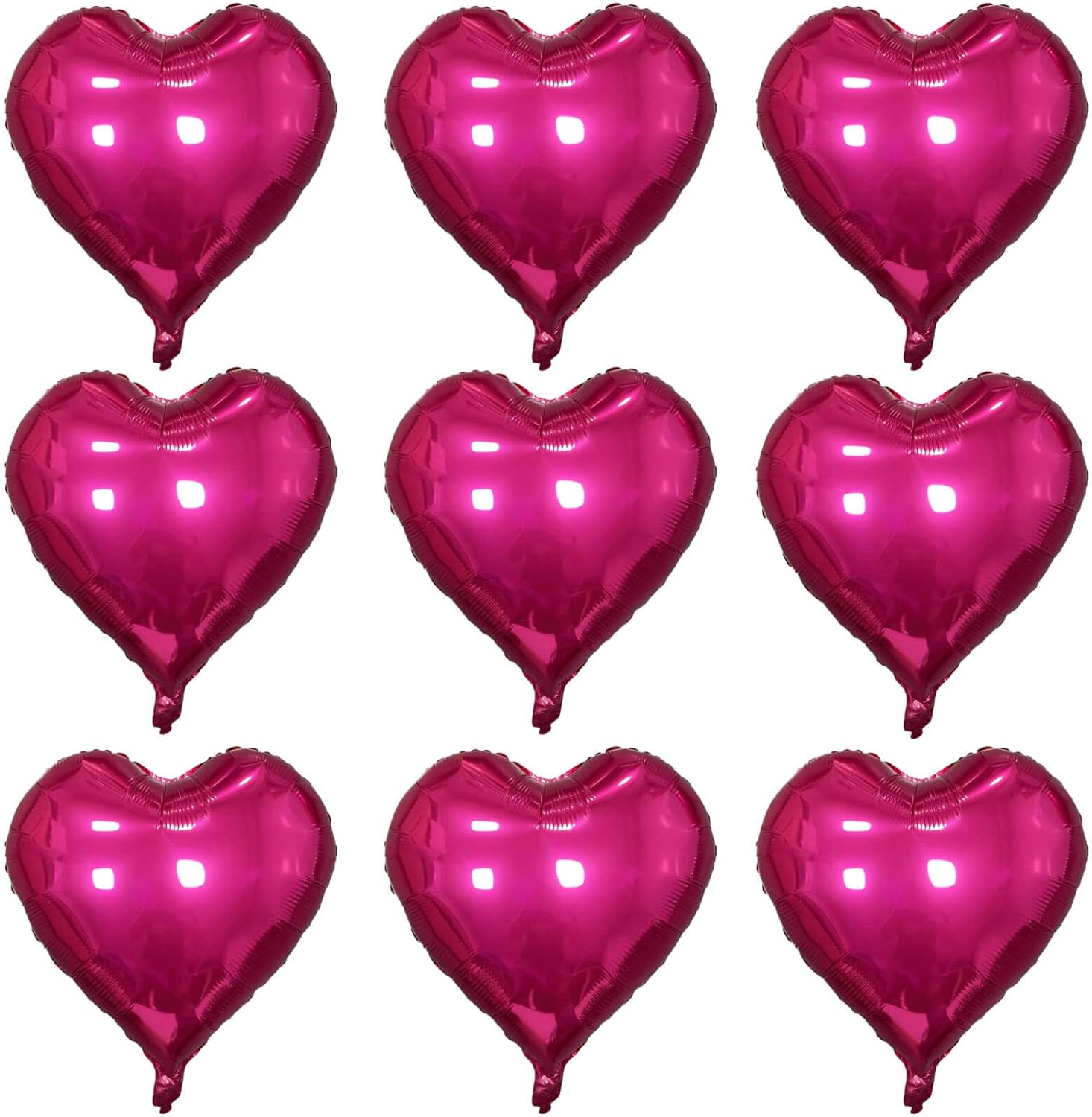 Hot Pink Heart Shaped balloons Pack of 10,18 Inch Vibrant Pink Love Valentine Balloons Heart Romantic Balloons For Valentines Day Propose Marriage Wedding Bridal Shower Engagement Party Decorations