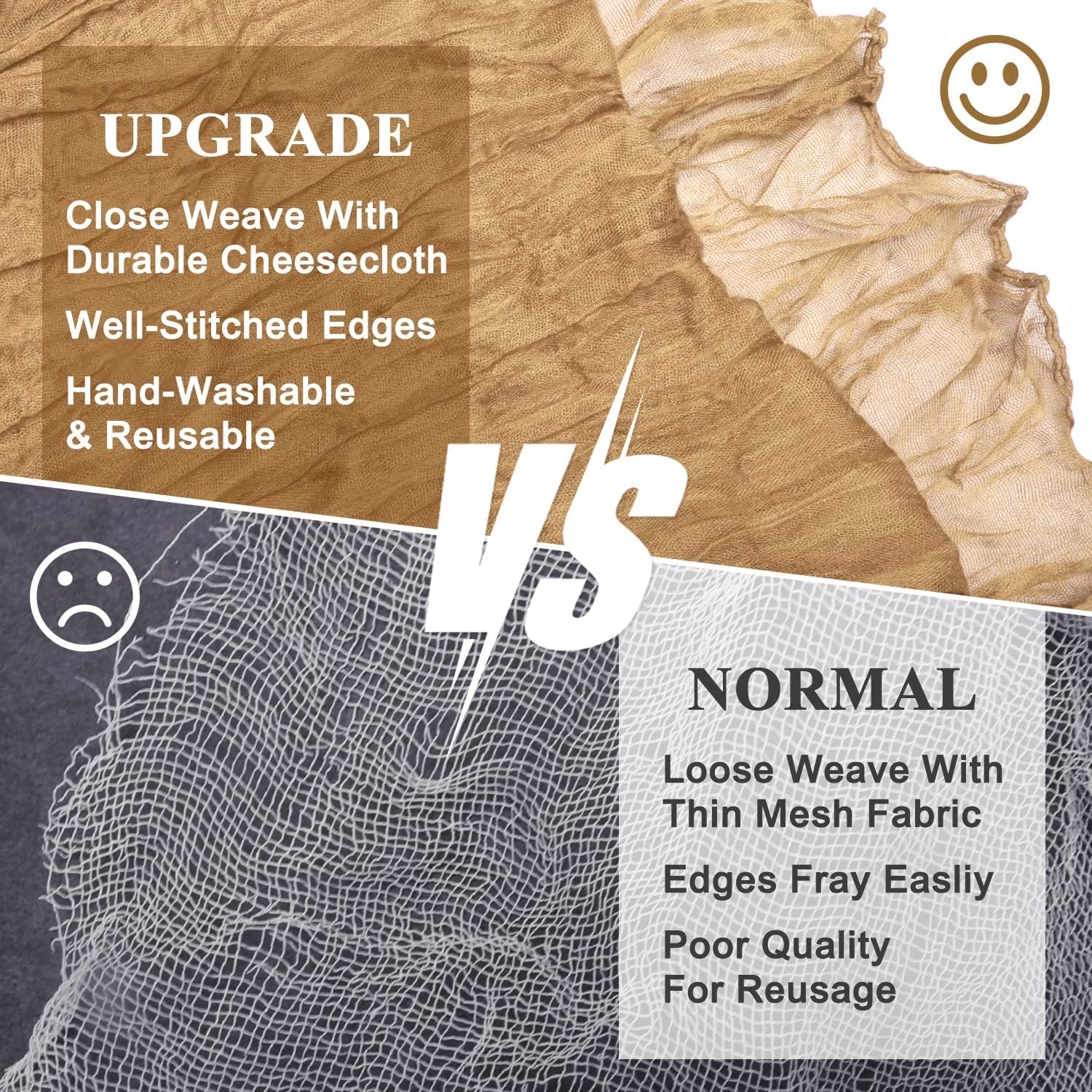 - 【Cheesecloth Table Runner】 Size: 35" W x 120" L. You will get 3 pieces 10FT length cheesecloth table runner. The sheer rustic table runner is long enough to span a large table and drape gracefully across the table. It will gently sway in the wind, adding a romantic atmosphere to your occasion. These eye-catching gauze table runners are ideal for arranging an elegant, stylish tablescape.