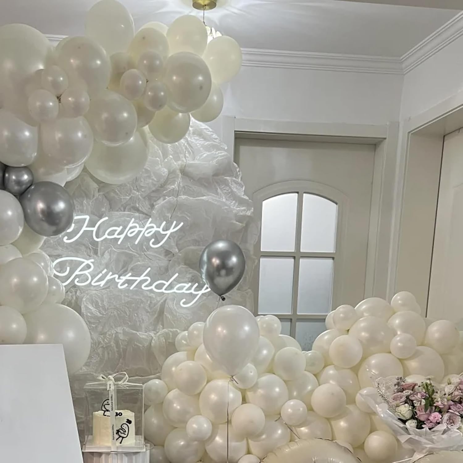 - Abundant Package: Includes total 90pack Ivory balloons: 2pcs 18inch, 30pcs 12inch, 25pcs 10inch, 33pcs 5inch and 3 sheet of adhesive dots, 2 rolls of ribbons. Designed for easy inflation and set up, Voircoloria Ivory balloons save you time and effort, so you can focus on enjoying your celebration without any hassle