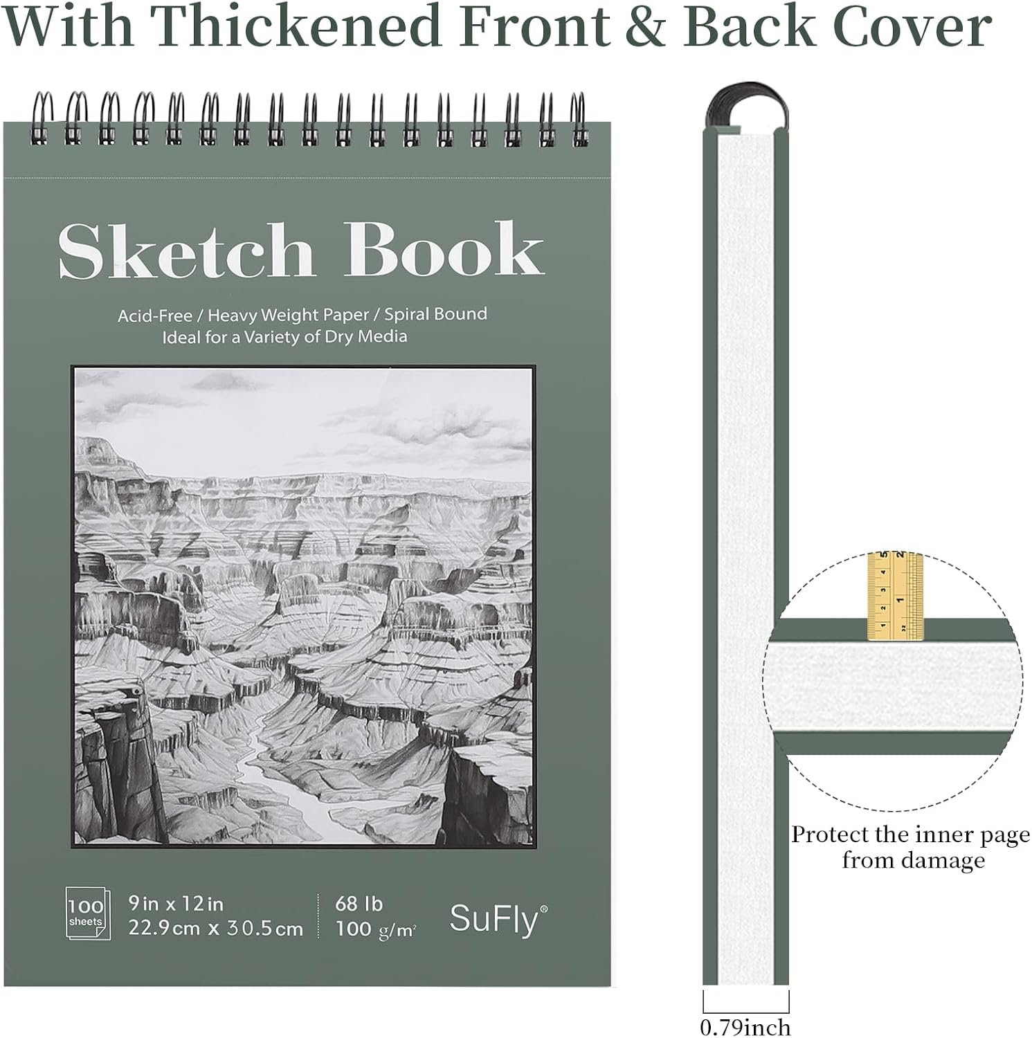 SuFly Sketch Book 9x12, Drawing Paper Pad-68lb/100gsm, Top Spiral Sketchbook Hardcover, 100 Sheets Sketch Pad for Kids Classroom Art Supplies for Adults-Sketchpad for Drawing, Illustration & Art Stuff