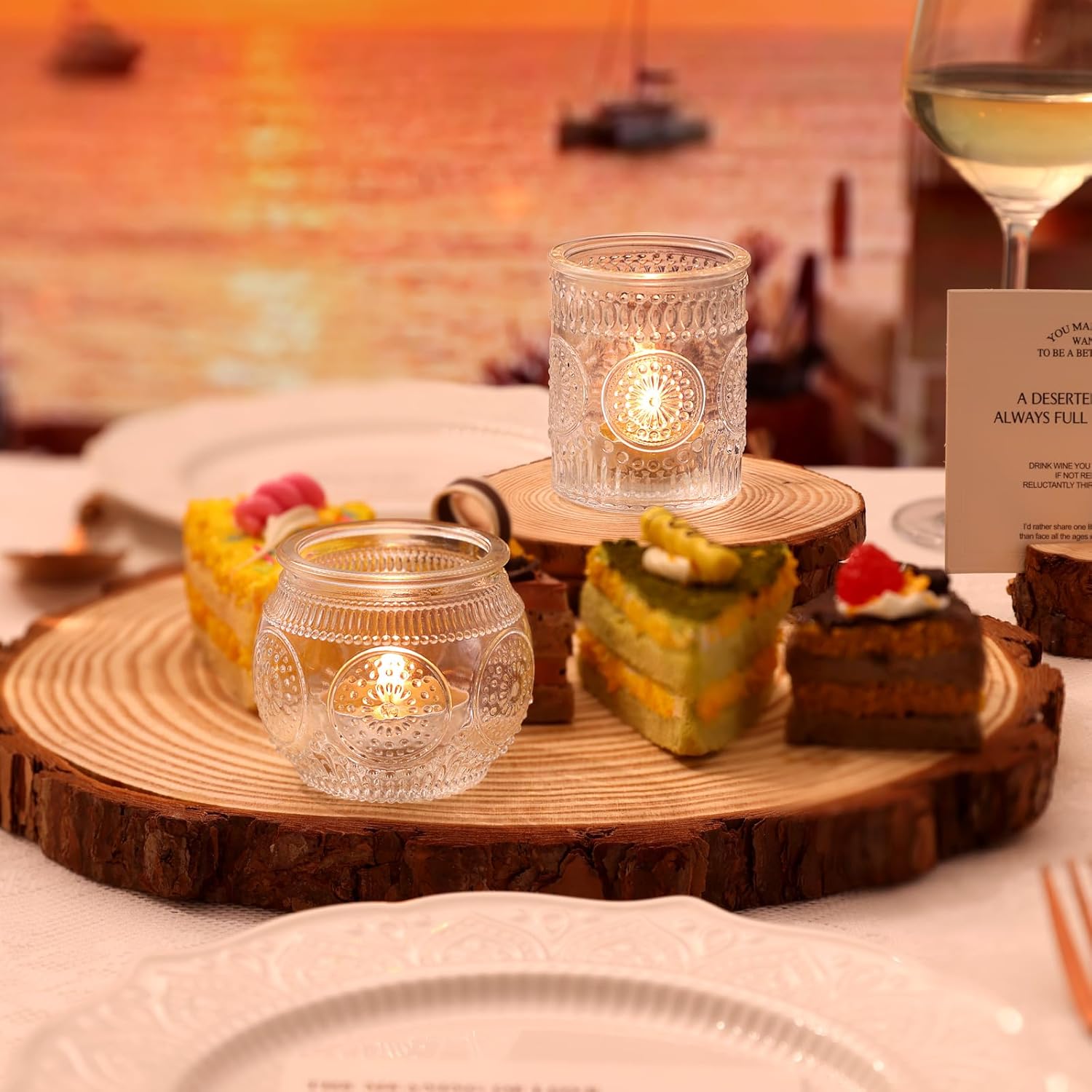 - ❤️❤️[ Votive Candle Holders Set ]❤️❤️: You will get 24 pack clear votive candle holders in your package, including 12 glass votives and 12 bowl glass votives.The dimensions are 2.1ʺD x 2.56ʺH and 2.1ʺD x 2.1ʺH approximately. These glass votive candle holders are the perfect complement to any dining table, which can be used with regular votive candles, tea light candles, flameless LED tea waxes, and edible butter candles, creating a warm and inviting ambiance that enhances the dining experience.
