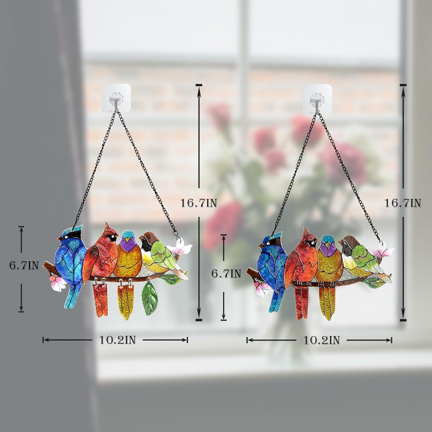 - Bird Lover Gift:This sun catcher a beautiful gift to bird lovers. This stained glass birds on branch not only makes a perfect memorial/grief gift, but also is a touching gift for other holidays.The stained glass suncatcher will be an awesome hanging decoration for a whole year.