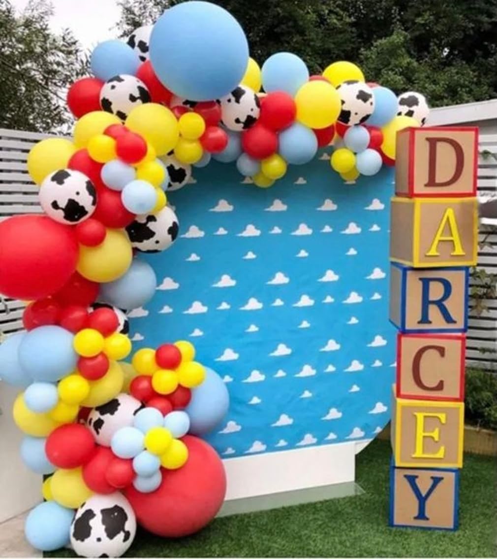 - 12 Inch party balloons: Package content includes 6 pcs blue balloons, 7 pcs red balloons, 5 pcs colud balloons,7 pcs yellow balloons,5 pcs cow balloons, a balloon ribbon.The color combination meets all your party imagination