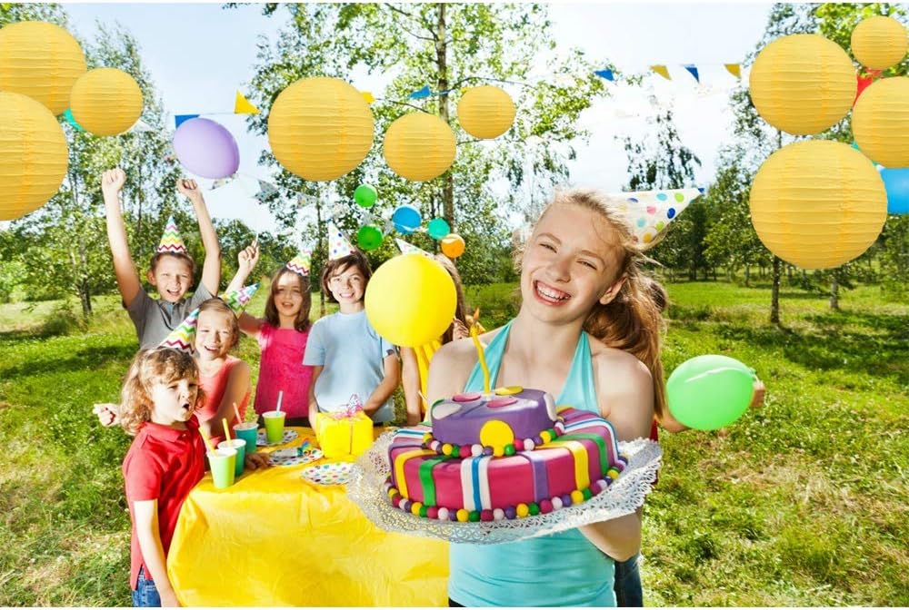 BEISHIDA 6-Inch Yellow Round Paper Lanterns Decorative Hanging Asia Chinese Japanese Paper Lanterns Lamp for Birthday Halloween Wedding Baby Bridal Shower Fall Home Decor Party Decoration(6 Packs)