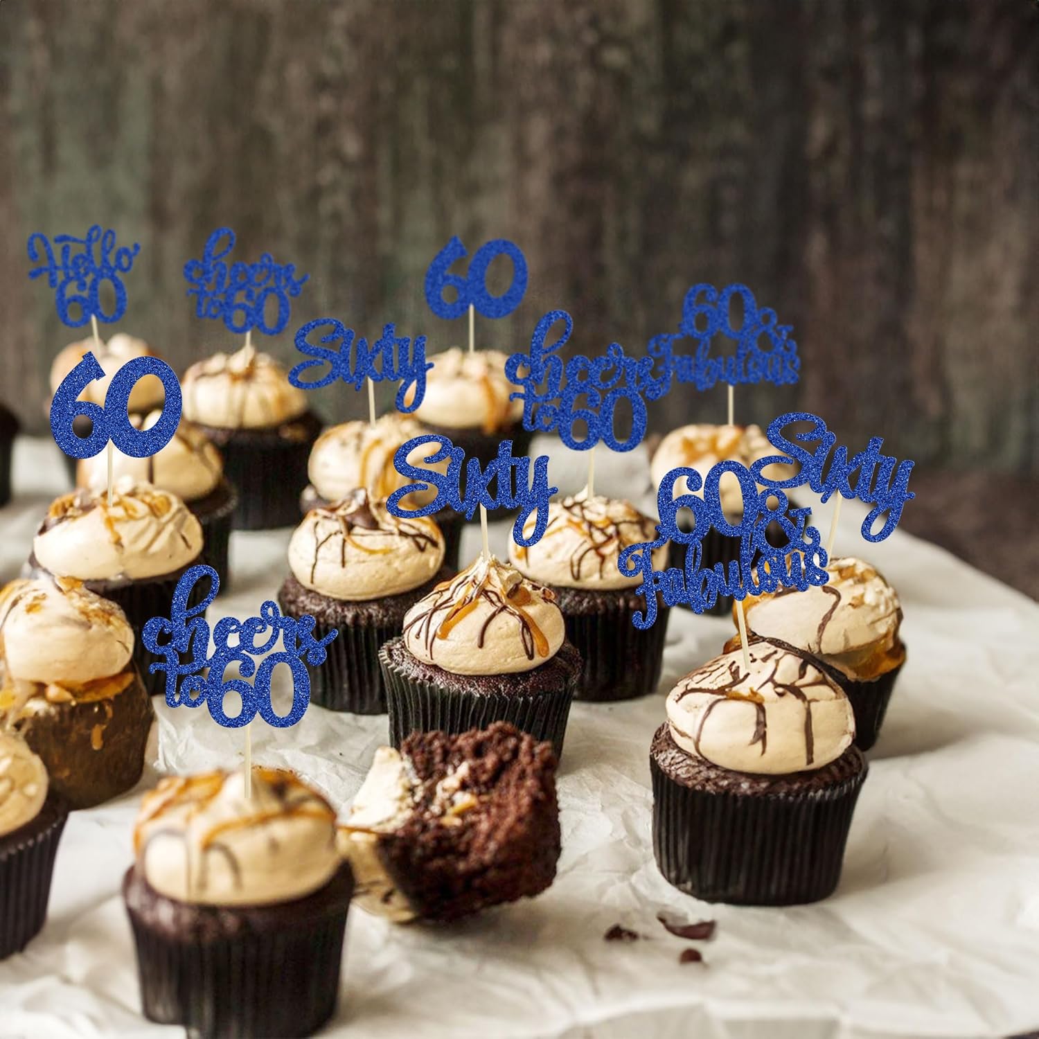 - -These Happy 60th Birthday Cupcake Toppers are so cute and good for happy 60th birthday theme party, cheers to 60 years theme party, 60 fabulous theme party, happy 60th birthday anniversary theme party cake decorations. They can make your cupcake more attractive and bring the fun to your party. You can also apply them for ice cream, fruits, cookies and other desserts.
