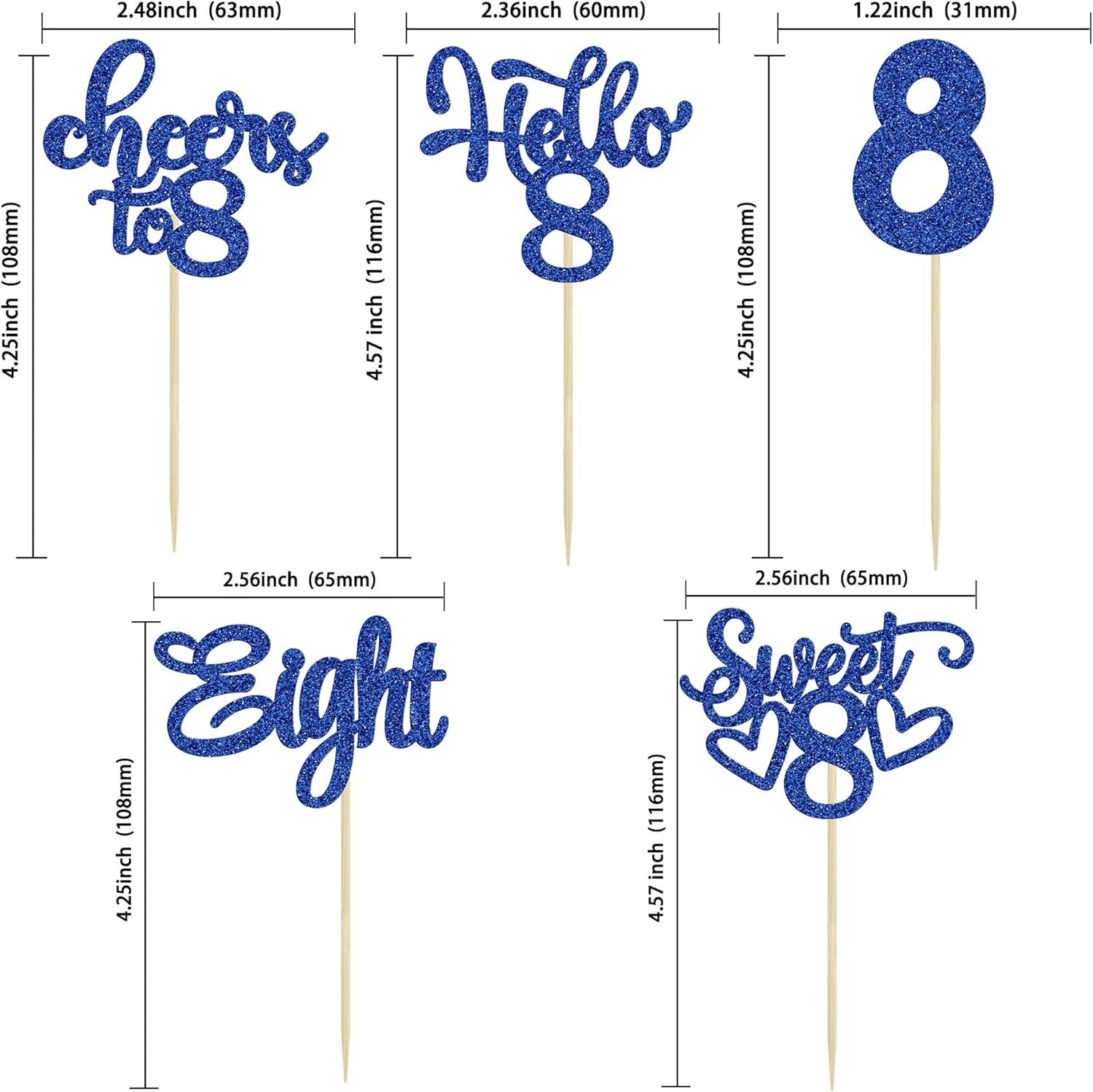 - -These Happy 8th Birthday Cupcake Toppers are so cute and good for happy 8th birthday theme party, cheers to 8 years theme party, 8 fabulous theme party, happy 8th birthday anniversary theme party cake decorations. They can make your cupcake more attractive and bring the fun to your party. You can also apply them for ice cream, fruits, cookies and other desserts.