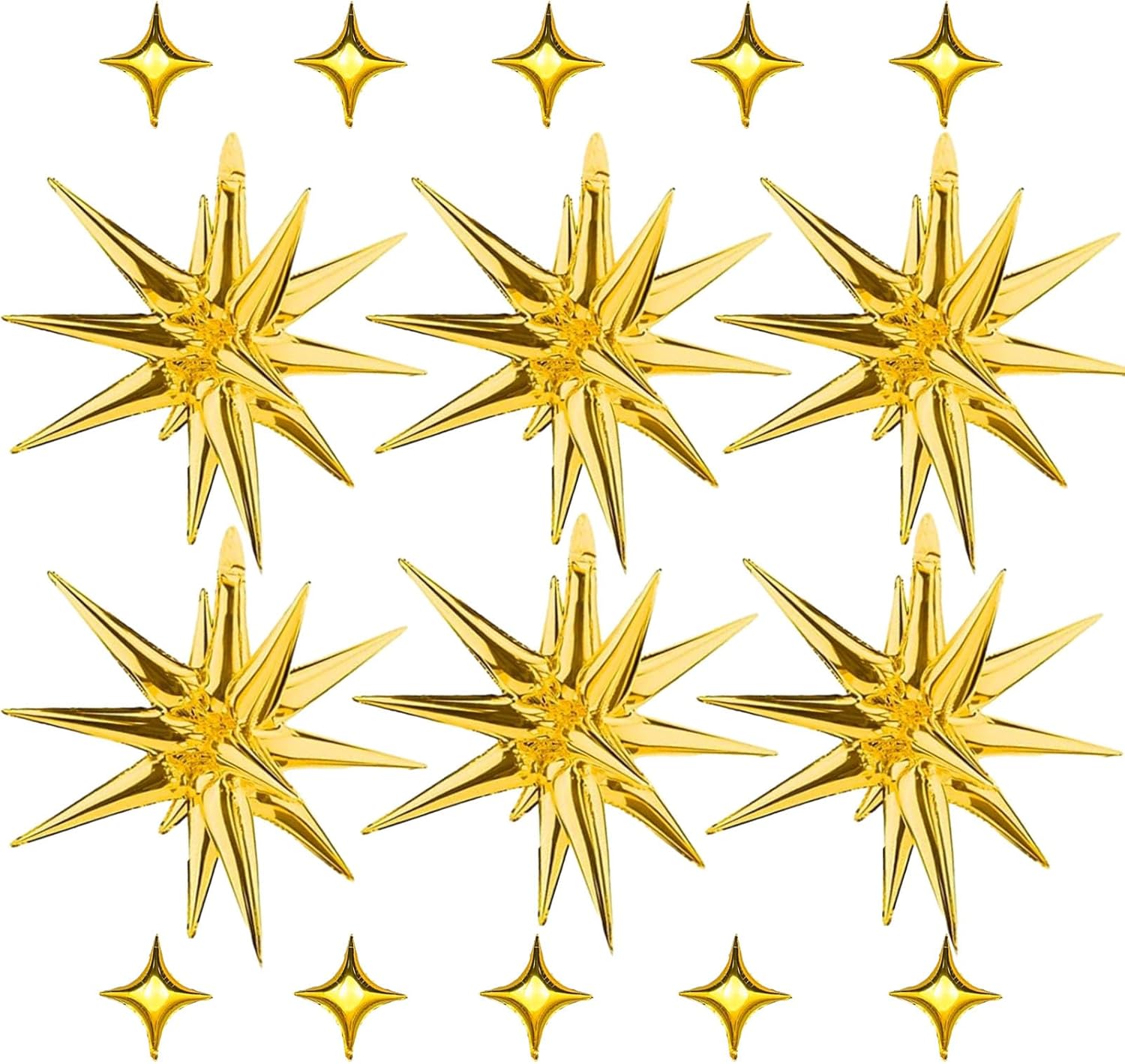 6 Pcs 22" & 10 Pcs 10" Star Foil Balloons - Gold, 12 Point & 4 Point Star Balloons for Party Supplies, Christmas, Birthday, Wedding