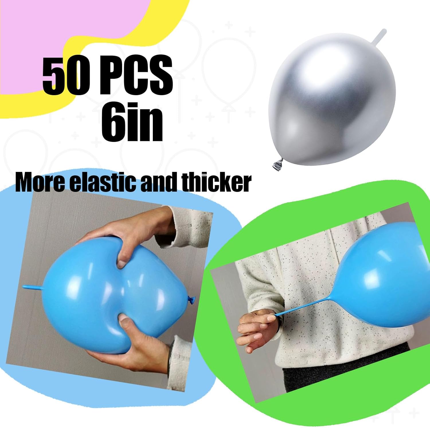 - 【THE PACKAGE INCLUDES】50 PCS 6 inch silver metallic link balloons. you can use the linked balloons to link these balloons end to end, which are easy to assemble, meeting your need for party decorations.