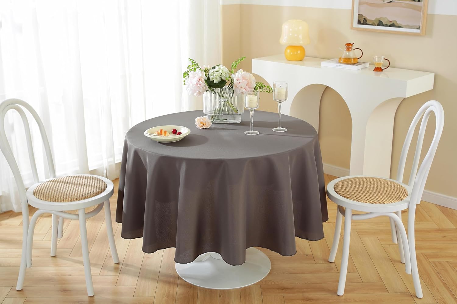 Craft And Party Round Tablecloth, 60 Inch Charcoal Tablecloth, Polyester Fabric Washable Table Cloth for Home, Party, Wedding or Restaurant Use.