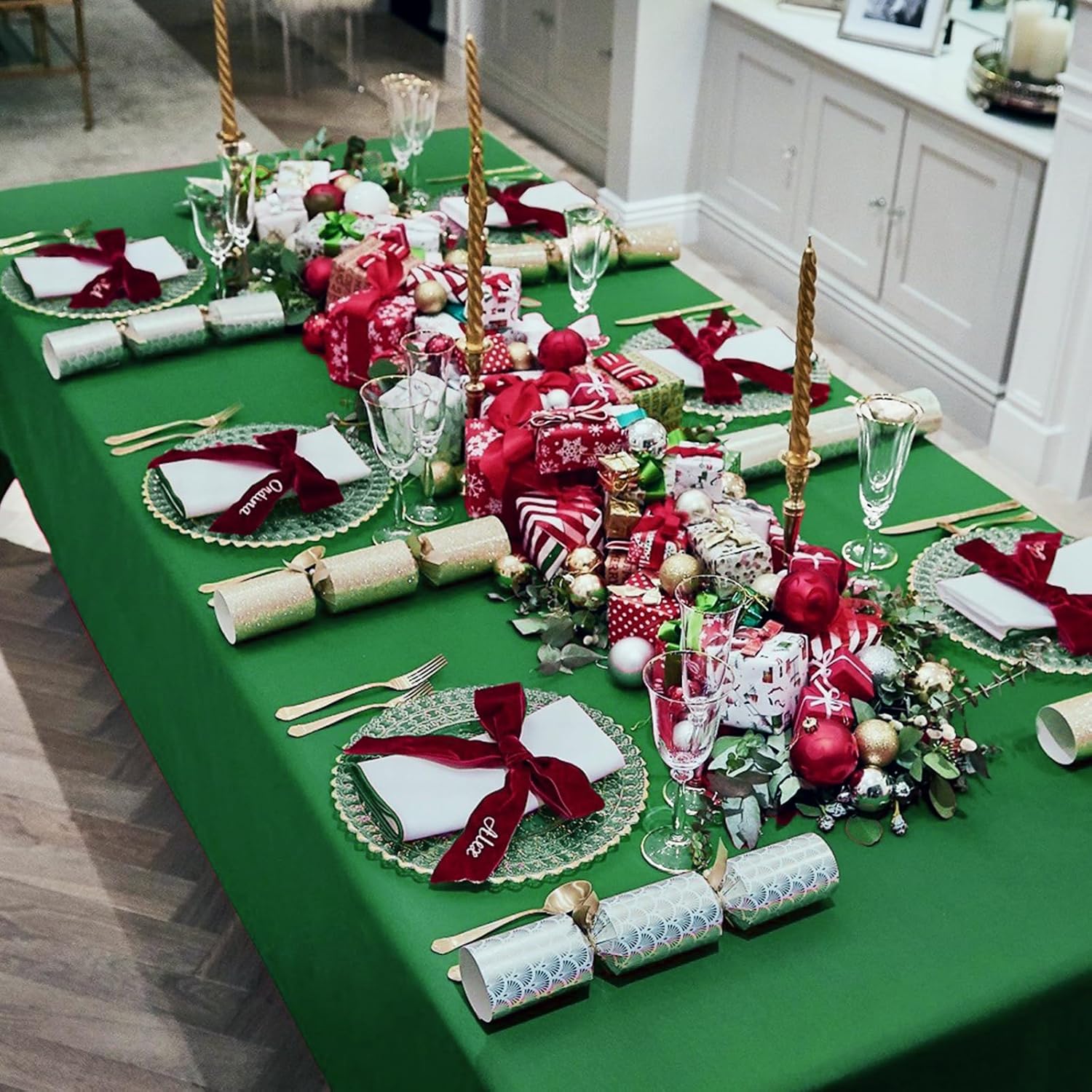- 🥂【Perfect size】This Green table cloth is 60x126 Inch, perfect for standard 8ft table, providing 15 inch drop. Please measure the size of your table before purchasing.Green table cover is more luxurious, classic and gracious, ideal for both formal & casual settings and makes a great gift for all occasions.