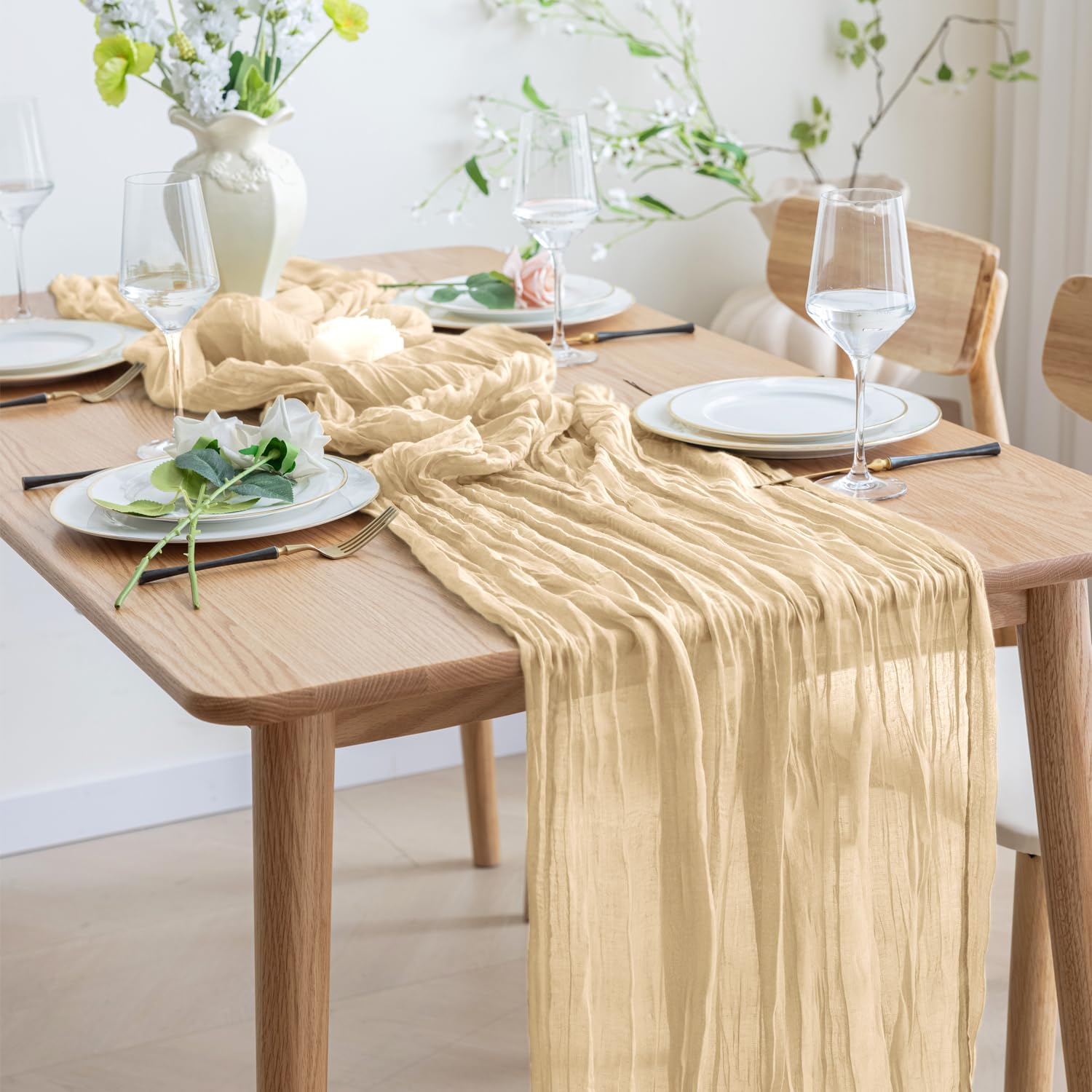 Asee'm 12pcs Cheesecloth Table Runner 120 Inches Long Sand Boho Gauze Cheese Cloth Runner 10FT Rustic Sheer Table Runners for Christmas Wedding Party Baby Shower Spring Easter Decoration