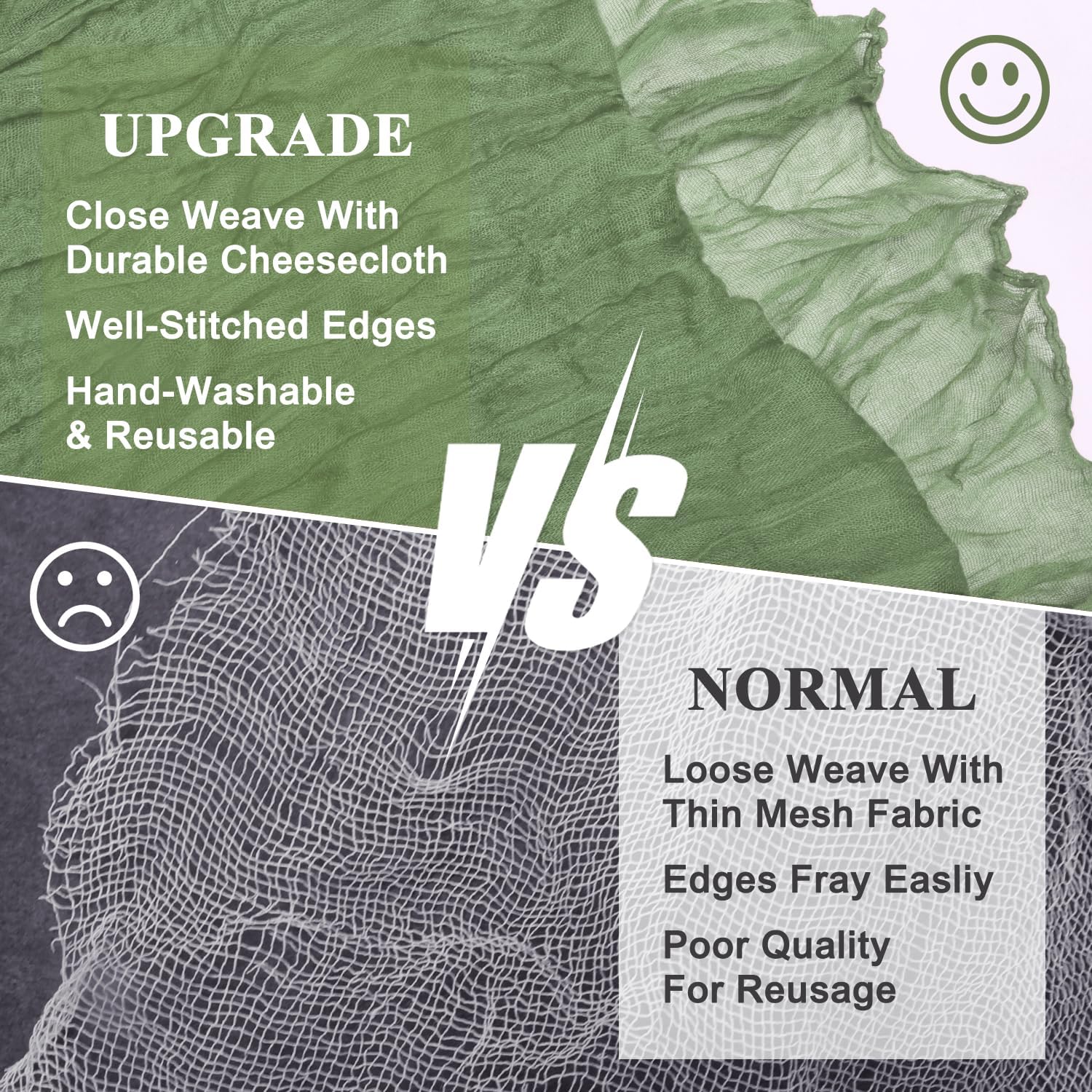 - 【Cheesecloth Table Runner】 Size: 35" W x 120" L. You will get 6 pieces 10FT length cheesecloth table runner. The sheer rustic table runner is long enough to span a large table and drape gracefully across the table. It will gently sway in the wind, adding a romantic atmosphere to your occasion. These eye-catching gauze table runners are ideal for arranging an elegant, stylish tablescape.