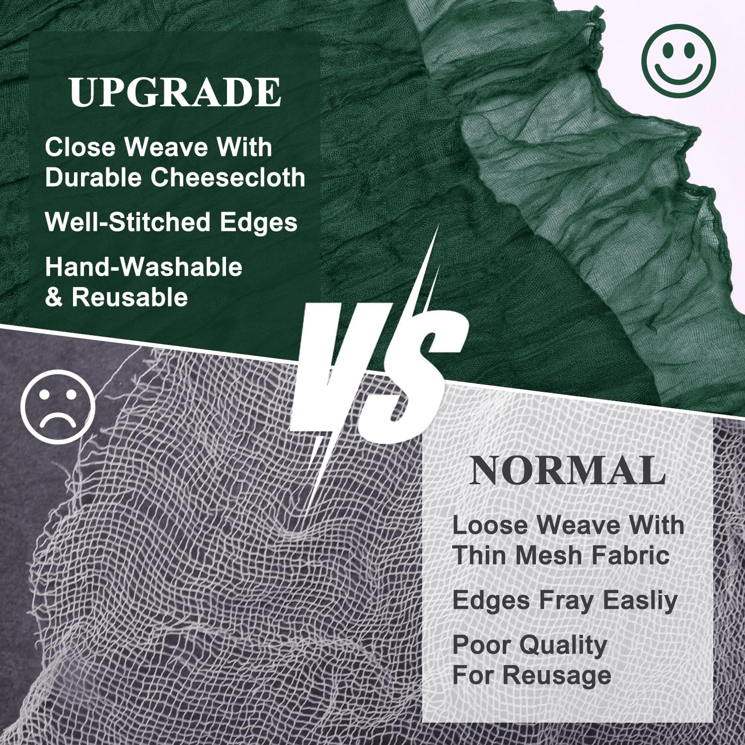 - 【Cheesecloth Table Runner】 Size: 35" W x 120" L. You will get 12 pieces 10FT length cheesecloth table runner. The sheer rustic table runner is long enough to span a large table and drape gracefully across the table. It will gently sway in the wind, adding a romantic atmosphere to your occasion. These eye-catching gauze table runners are ideal for arranging an elegant, stylish tablescape.
