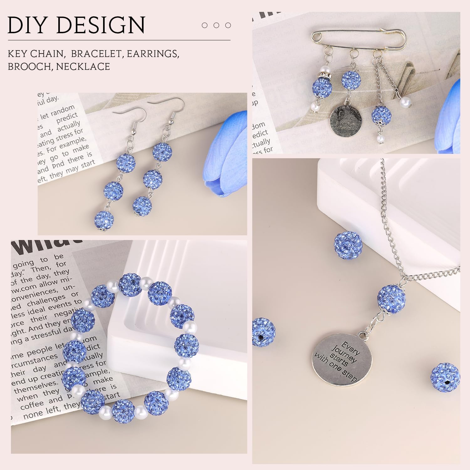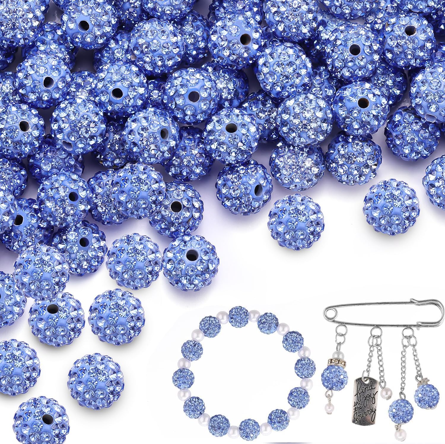 100 pcs 10mm Rhinestone Beads for Jewelry Making, Light Blue Shiny Round Shamballa Disco Beads Bulk, Sparkle Crystal Clay Christmas for Bracelet Baseball Necklace Earring Crafting and DIY