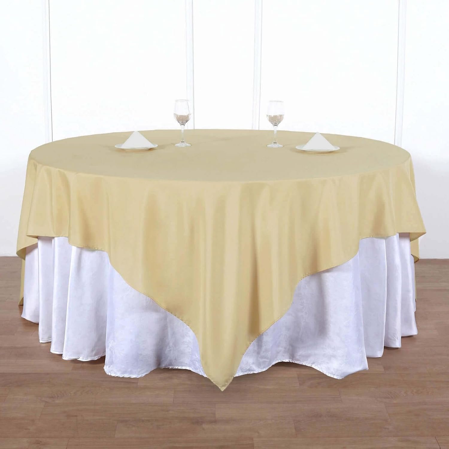 Efavormart 90" Square Polyester Table Overlay for Wedding Kitchen Dining Events - Champagne