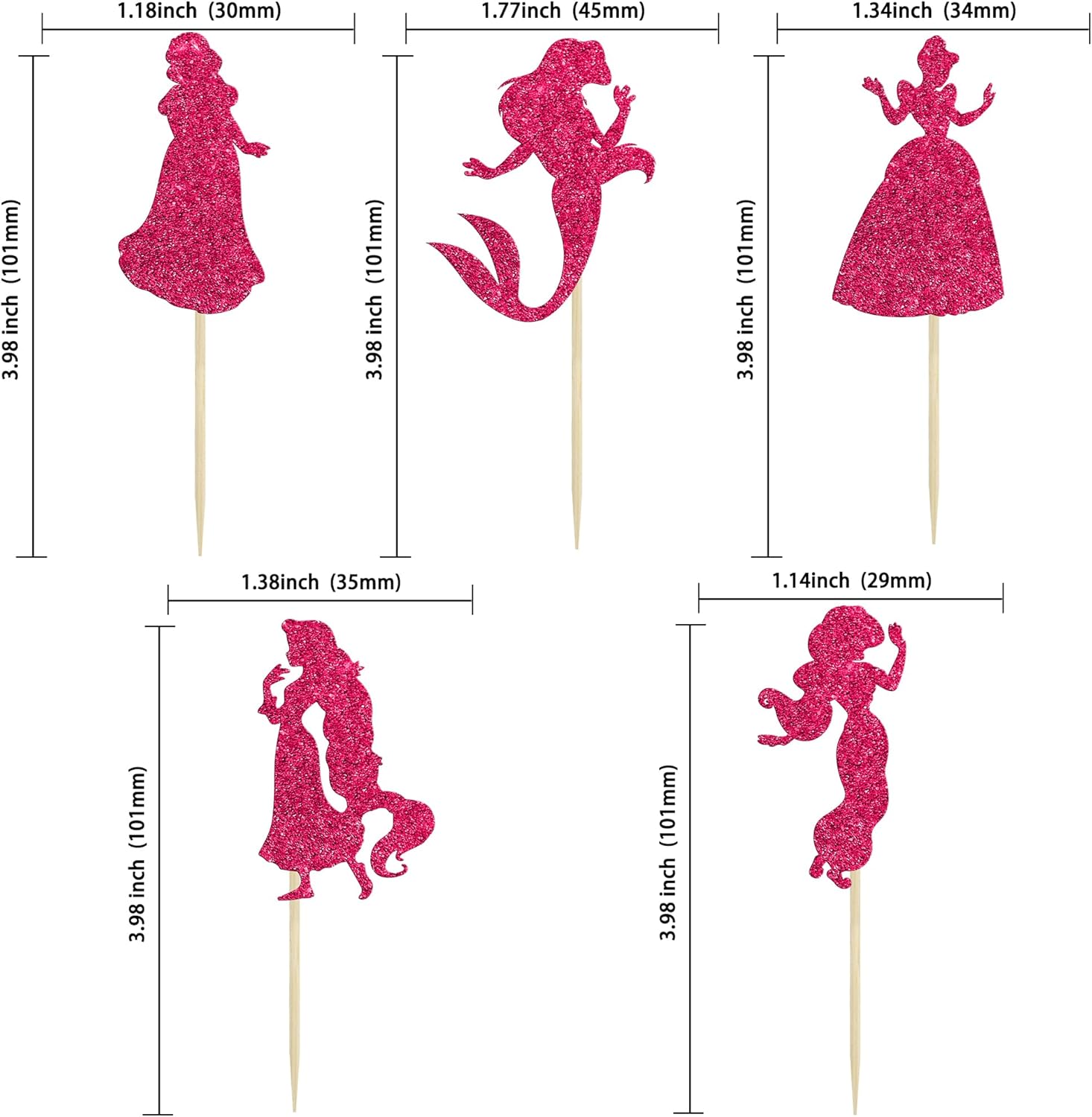 Gyufise 36Pcs Princess Cupcake Toppers Glitter Mermaid Girl Castle High Heel Crown Cupcake Picks Princess Theme Baby Shower Girls Birthday Party Cake Decorations Rose Red