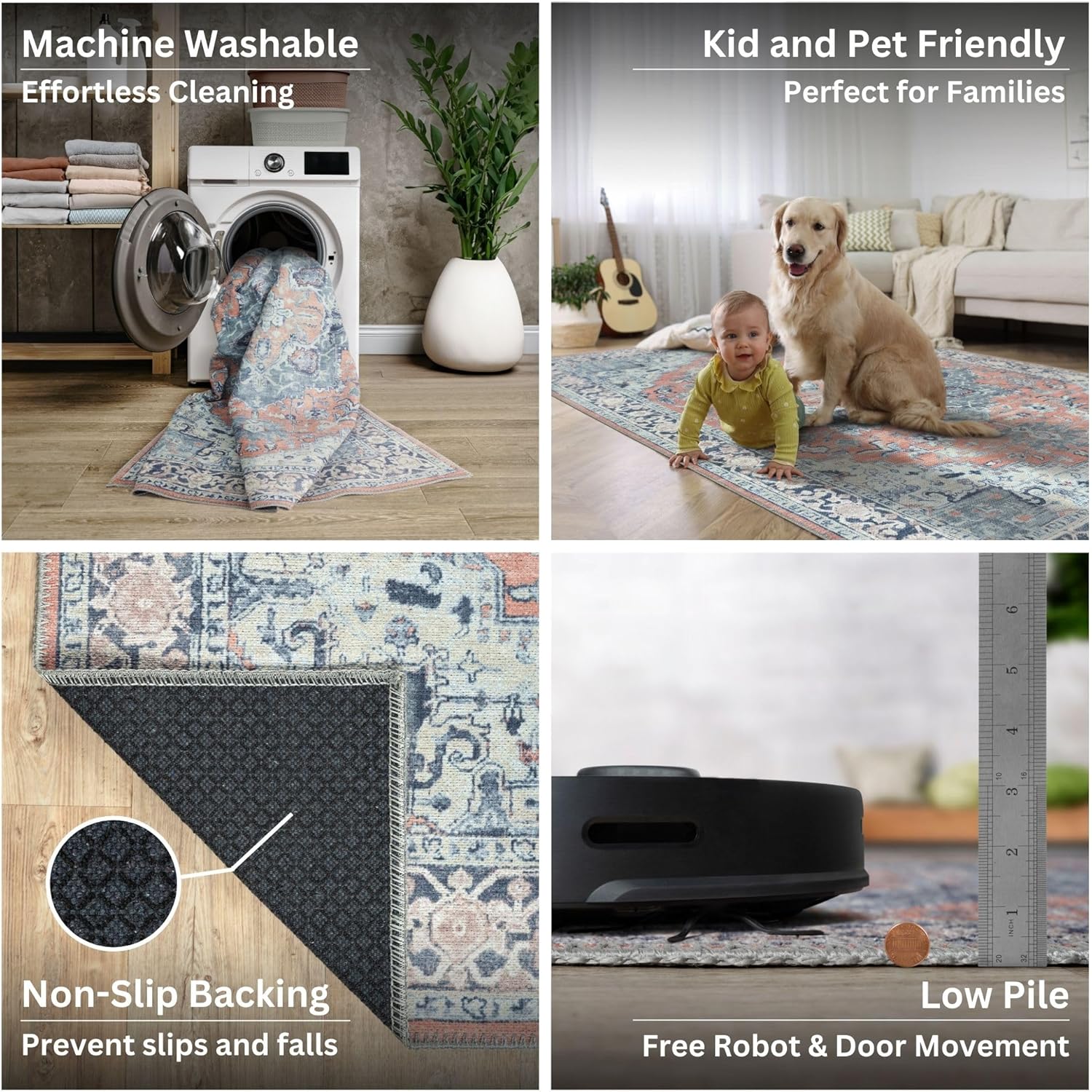 - EASY TO SETUP AND NON-SLIP: This one-piece machine washable rug with non-slip backing attached eliminates any additional setup. Simply unfold and lay flat upon arrival in the desired space. Non-slip backing prevents the rug from moving or sliding without the need for additional rug pad or grippers.