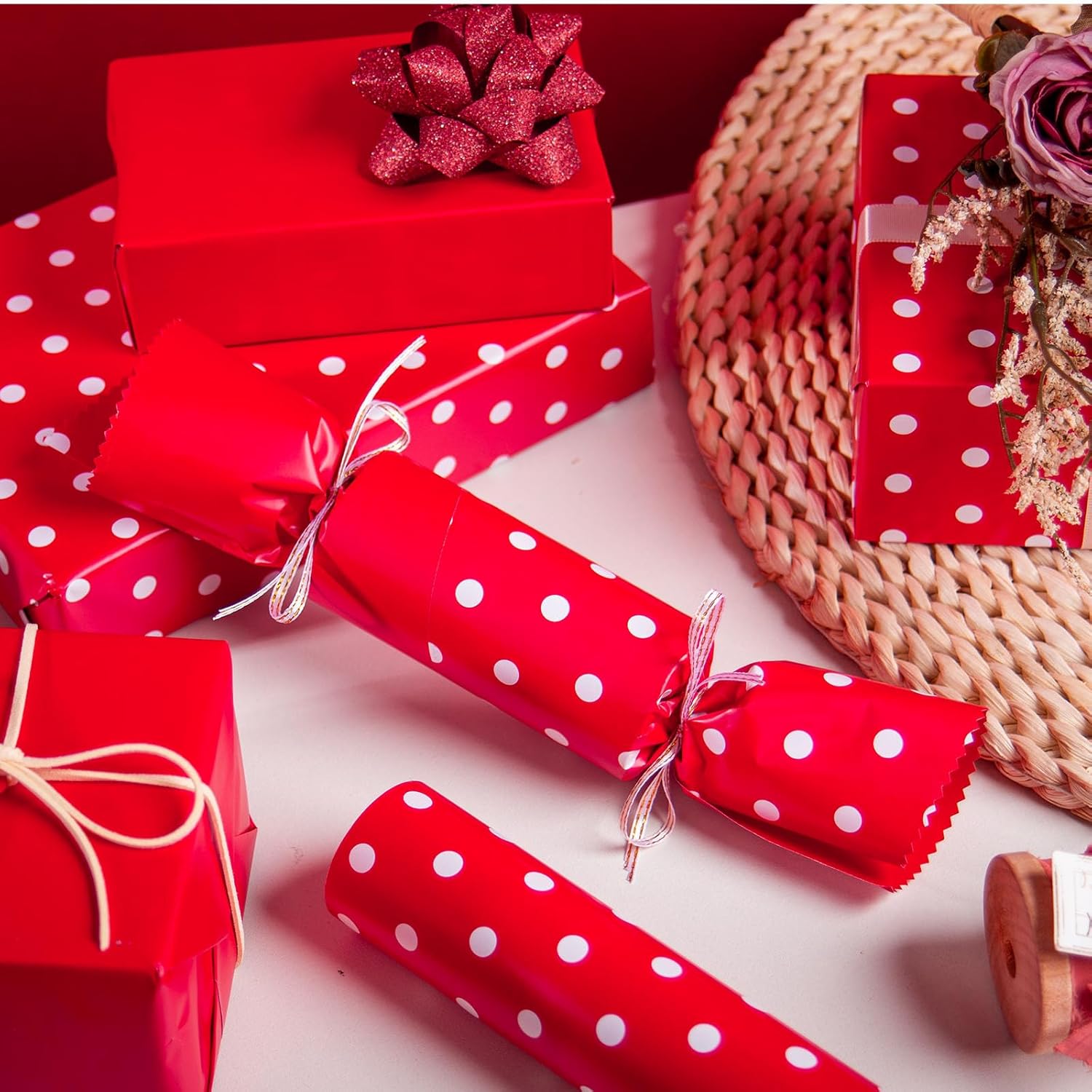 Flyhill Red Wrapping Paper,Reversible Gift Wrap Paper with Polka Dot Design for Girls,Birthday,Valentine's Day,Mother's Day(17 Inch X 32.8 Feet)