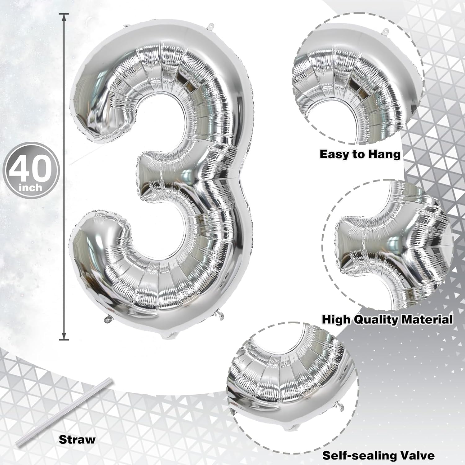 - 💓 Silver Number 30 Balloon: Our package included 40 inch number 3 & 0 balloon and 1pcs straw. Simply inflate the balloon using the straw, and you're ready to party! Silver number foil balloons are the best for women men birthday party decoration.