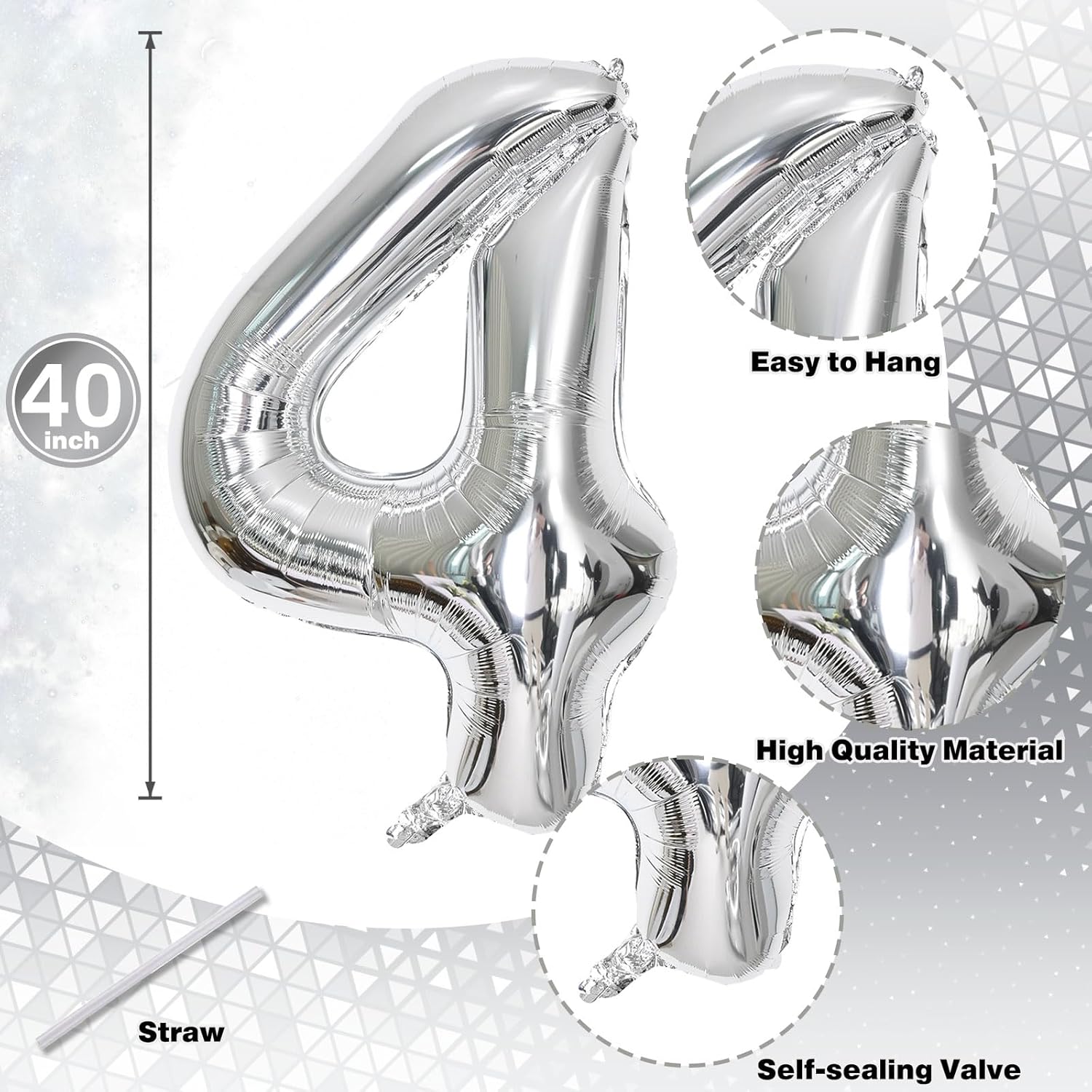 - 💓 Silver Number 14 Balloon: Our package included 40 inch number 1 & 4 balloon and 1pcs straw. Simply inflate the balloon using the straw, and you're ready to party! Silver number foil balloons are the best for girls or boys birthday party decoration.