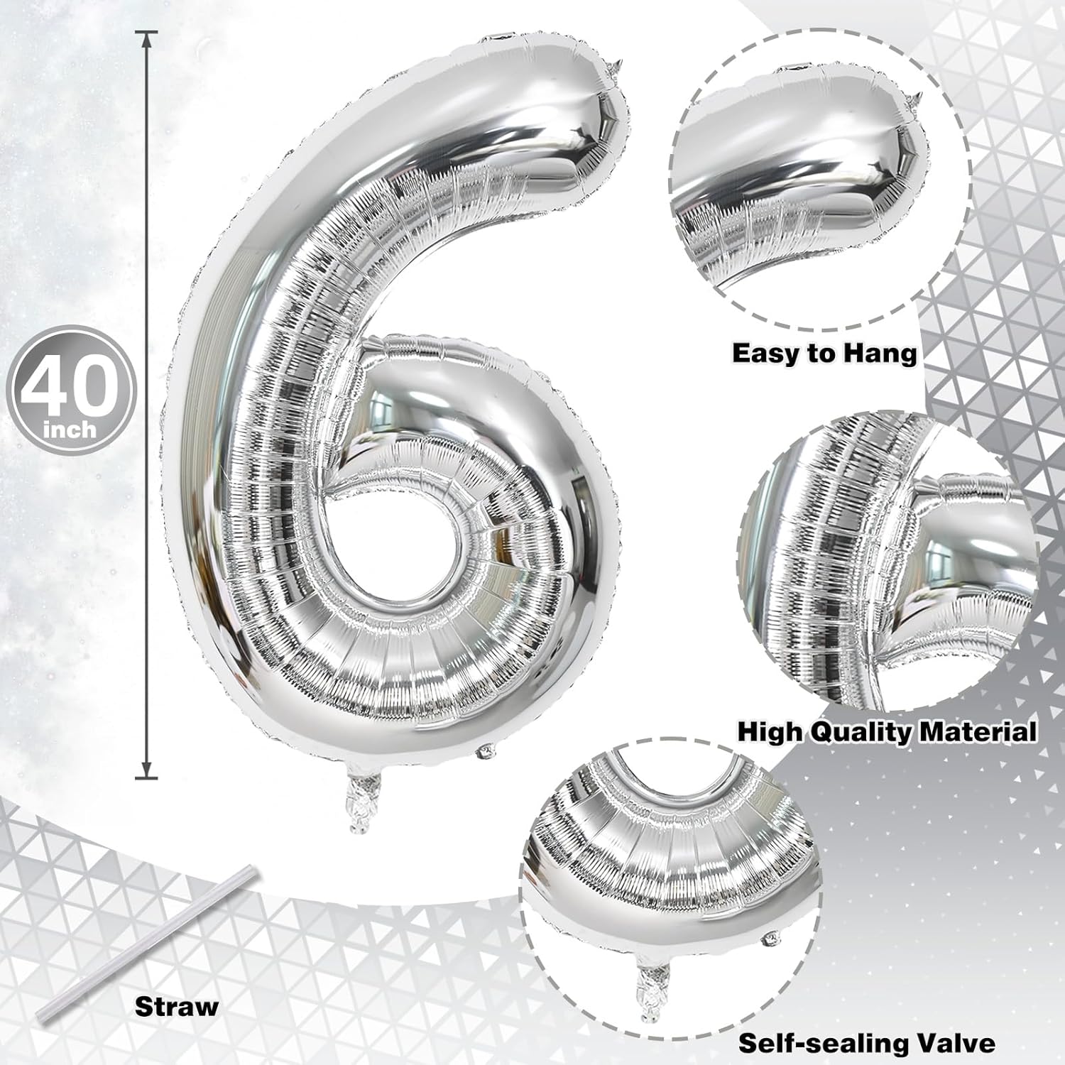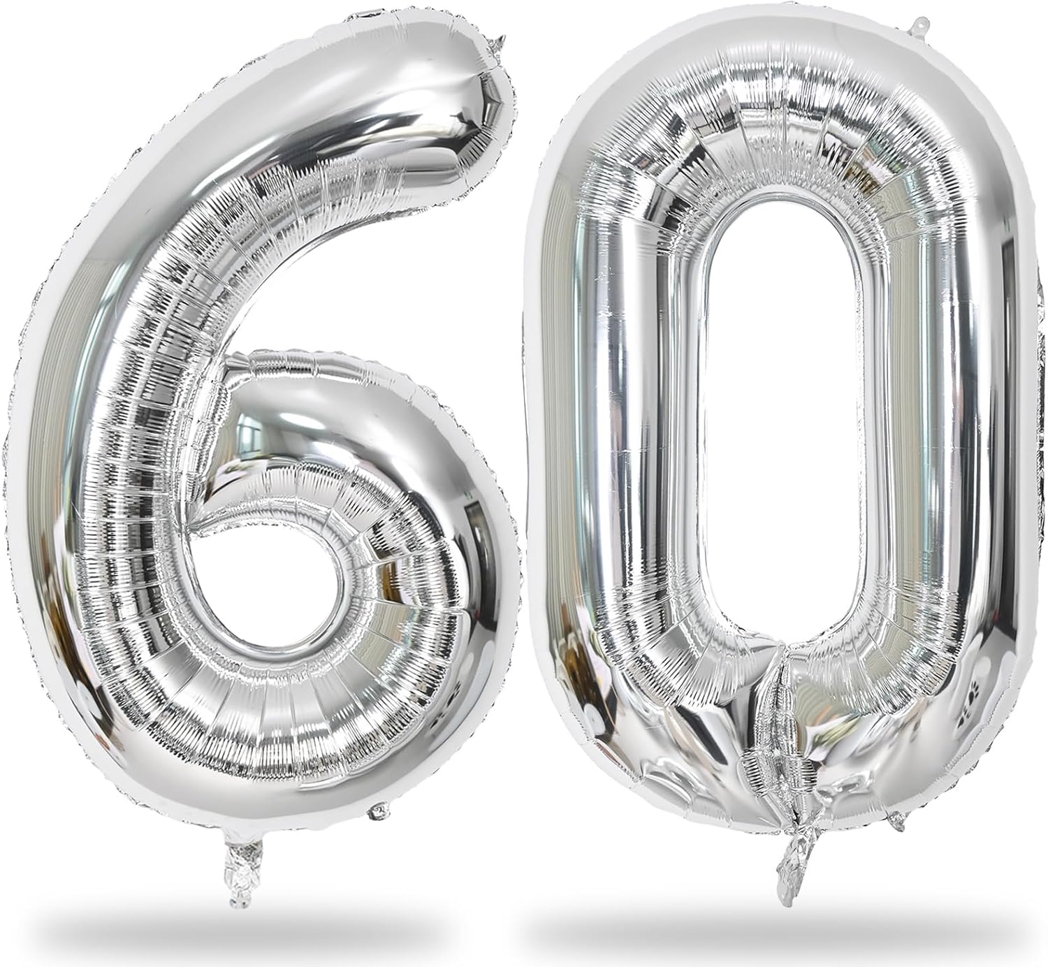 - 💓 Silver Number 60 Balloon: Our package included 40 inch number 6 & 0 balloon and 1pcs straw. Simply inflate the balloon using the straw, and you're ready to party! Silver number foil balloons are the best for women men birthday party decoration.