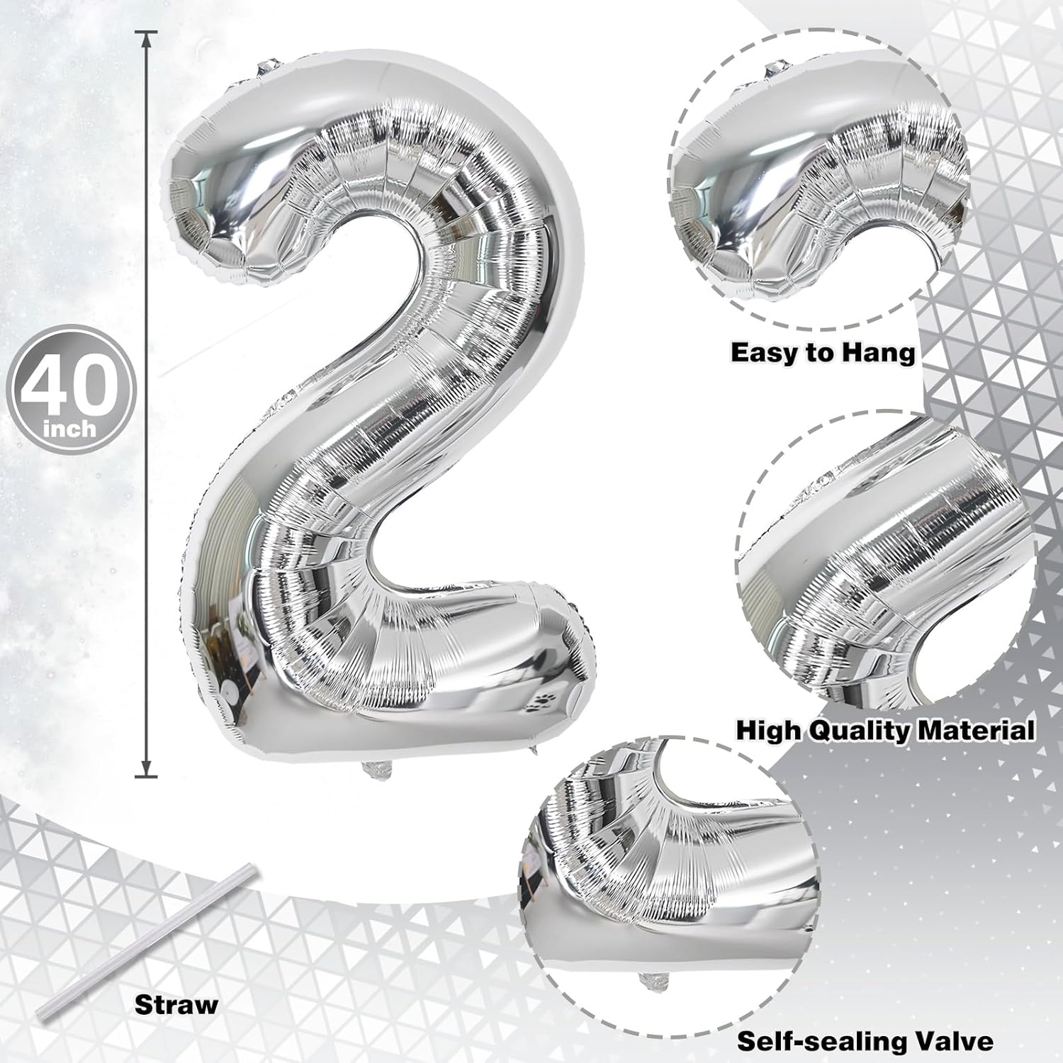 - 💓 Silver Number 21 Balloon: Our package included 40 inch number 2 & 1 balloon and 1pcs straw. Simply inflate the balloon using the straw, and you're ready to party! Silver number foil balloons are the best for women men birthday party decoration.