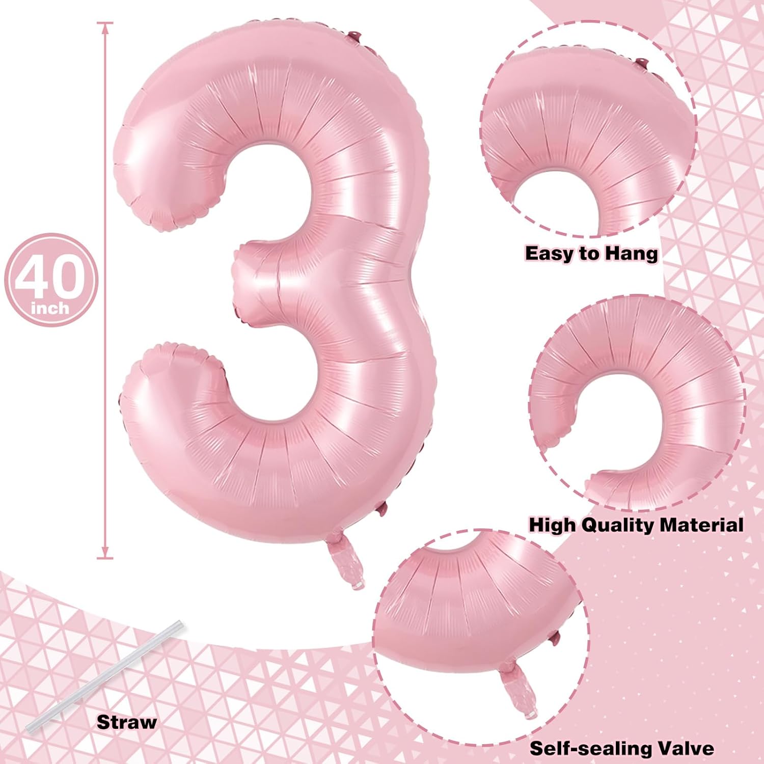 - 💓 Pastel Pink Number 13 Balloon: Our package included 40 inch number 1 & 3 balloon and 1pcs straw. Simply inflate the balloon using the straw, and you're ready to party! Light pink number foil balloons are the best for girls birthday party decoration.