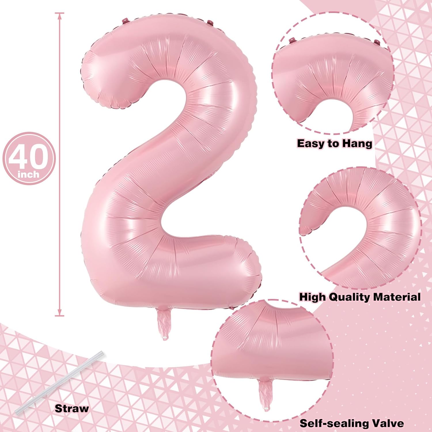 - 💓 Pastel Pink Number 20 Balloon: Our package included 40 inch number 2 & 0 balloon and 1pcs straw. Simply inflate the balloon using the straw, and you're ready to party! Light pink number foil balloons are the best for women birthday party decoration.