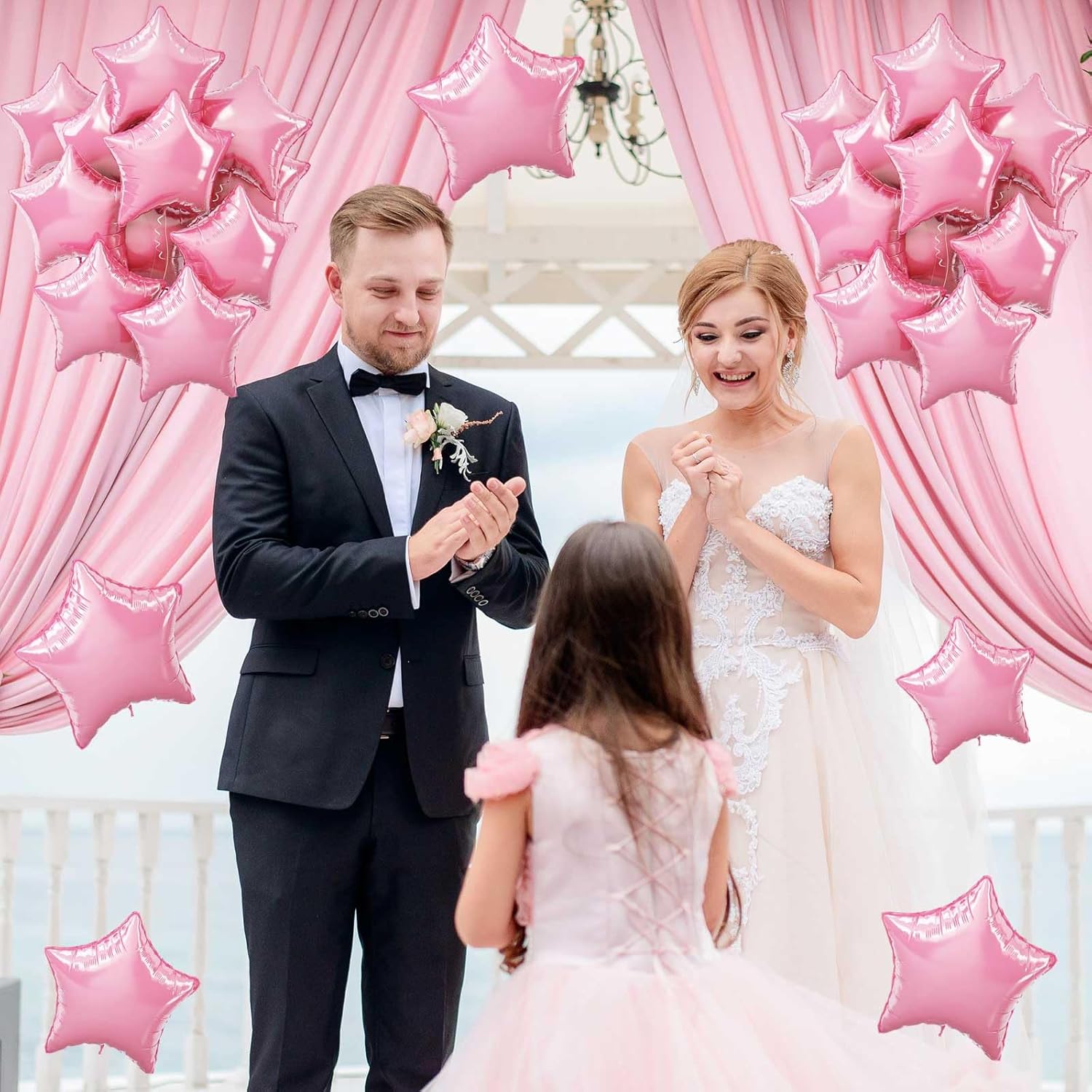 - Pink Stars Party Balloons: Pack of 10, designed with Giant 18 inch stars foil balloons, each balloons set comes with a straw and ribbon.