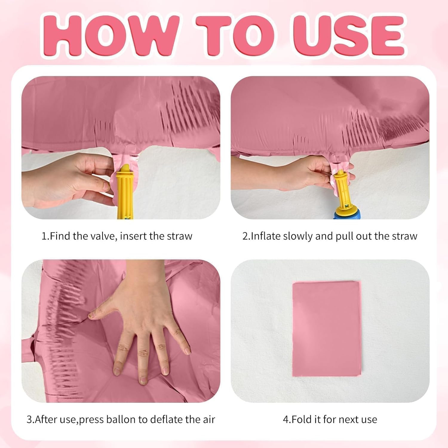 - Easy To Use:These pink heart foil balloons are suitable for helium or air. Easy to inflate using the a straw or an air handheld pump. This heart foil balloon adopts self-sealing design, you only need to press the inflation port to seal it after finishing inflate. The balloons are reusable and can be folded up for next use after being deflated with a straw.