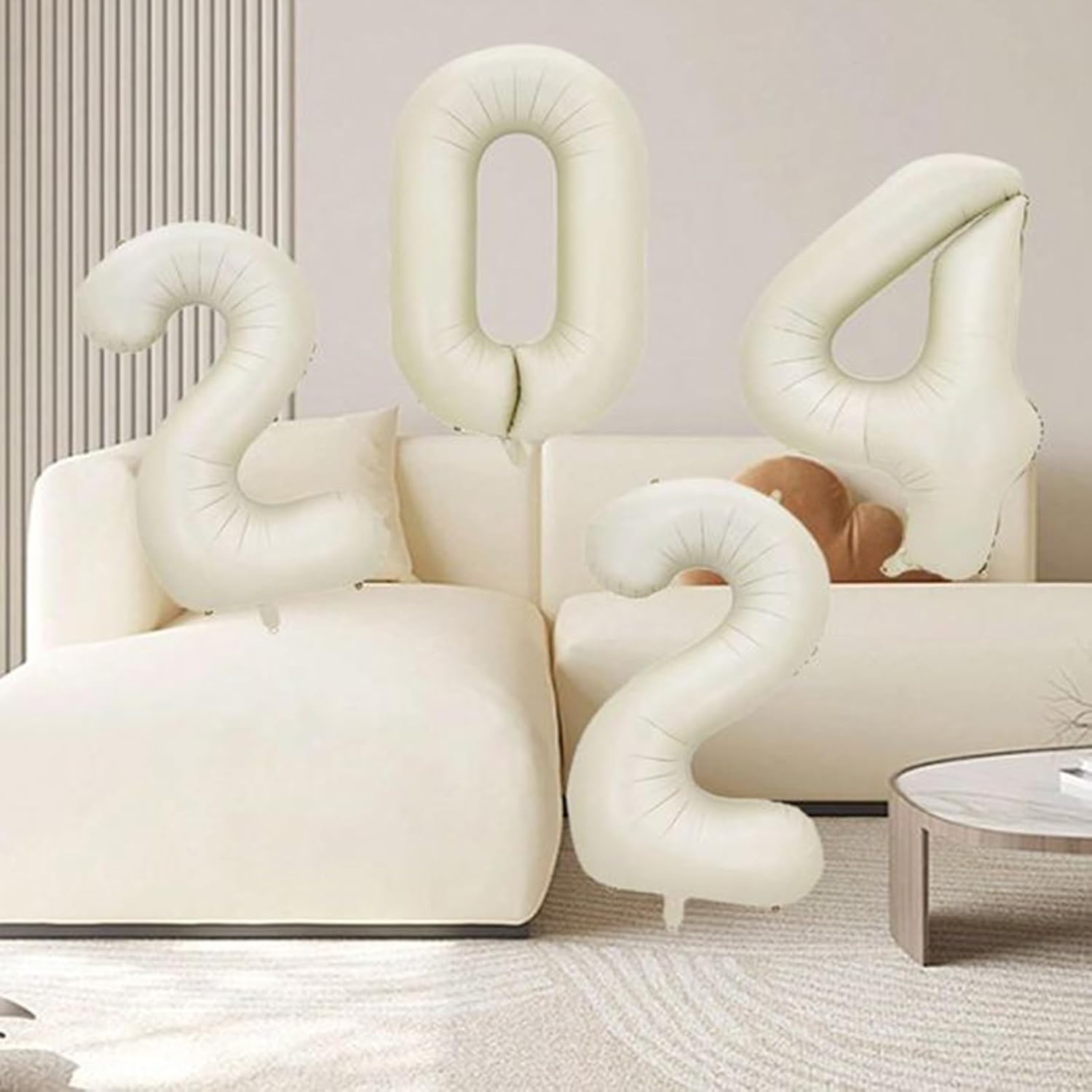 40 Inch Cream White Numbers Balloons0-9,Number 4 Digit Helium Balloons,Foil Mylar Big Number Balloons for 4th 14 Birthday Party Supplies Decorations Anniversary Wedding Supplies Decorations