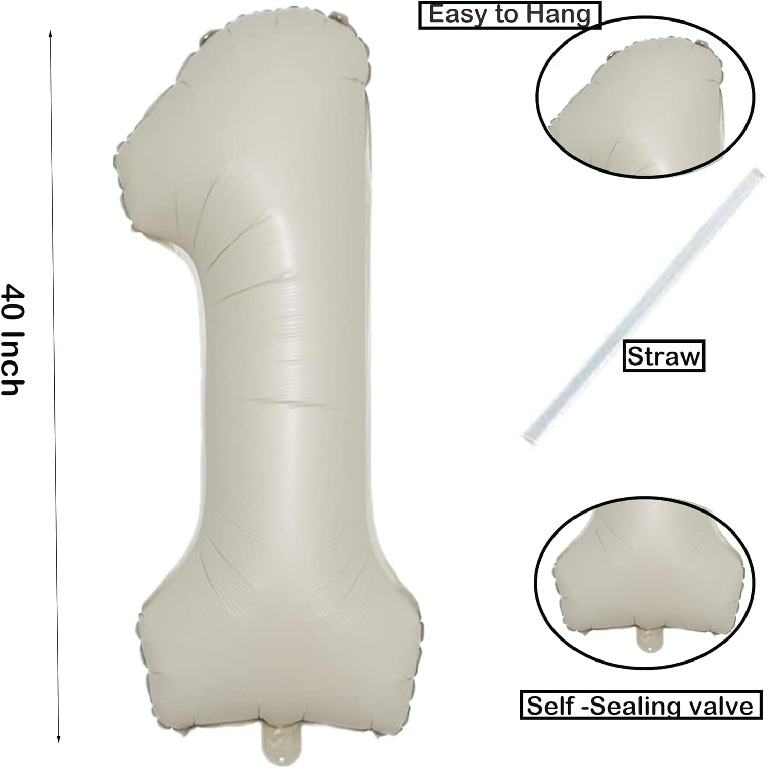 - 【Easy to Inflate & Deflate】The cream digital 1 balloons only need to be filled with 90% air or helium. when you want to fill the number 1 balloon with air, just put the straw or insert the helium valve into the plastic valve at the bottom of the figure and blow slowly. When the balloon is fully inflated, remove the straw and squeeze the self-sealing plastic valve. If you want your balloon to float in the air, you can go to your local convenience store and fill it with helium.