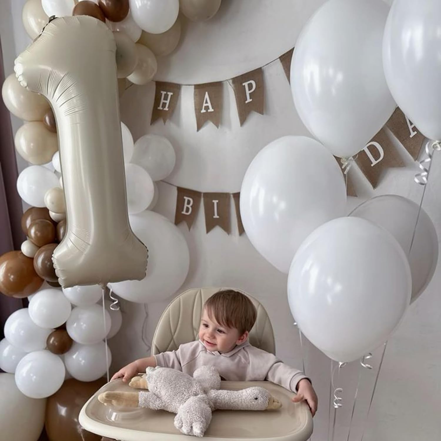 40 Inch Cream White Number1st Balloon Mylar Big Foil Helium Number 10th 11st 21 31 61 Balloon for Party Decorations,Digital Birthday Party Wedding, Boy Baby Shower Decorations (Cream No 1)