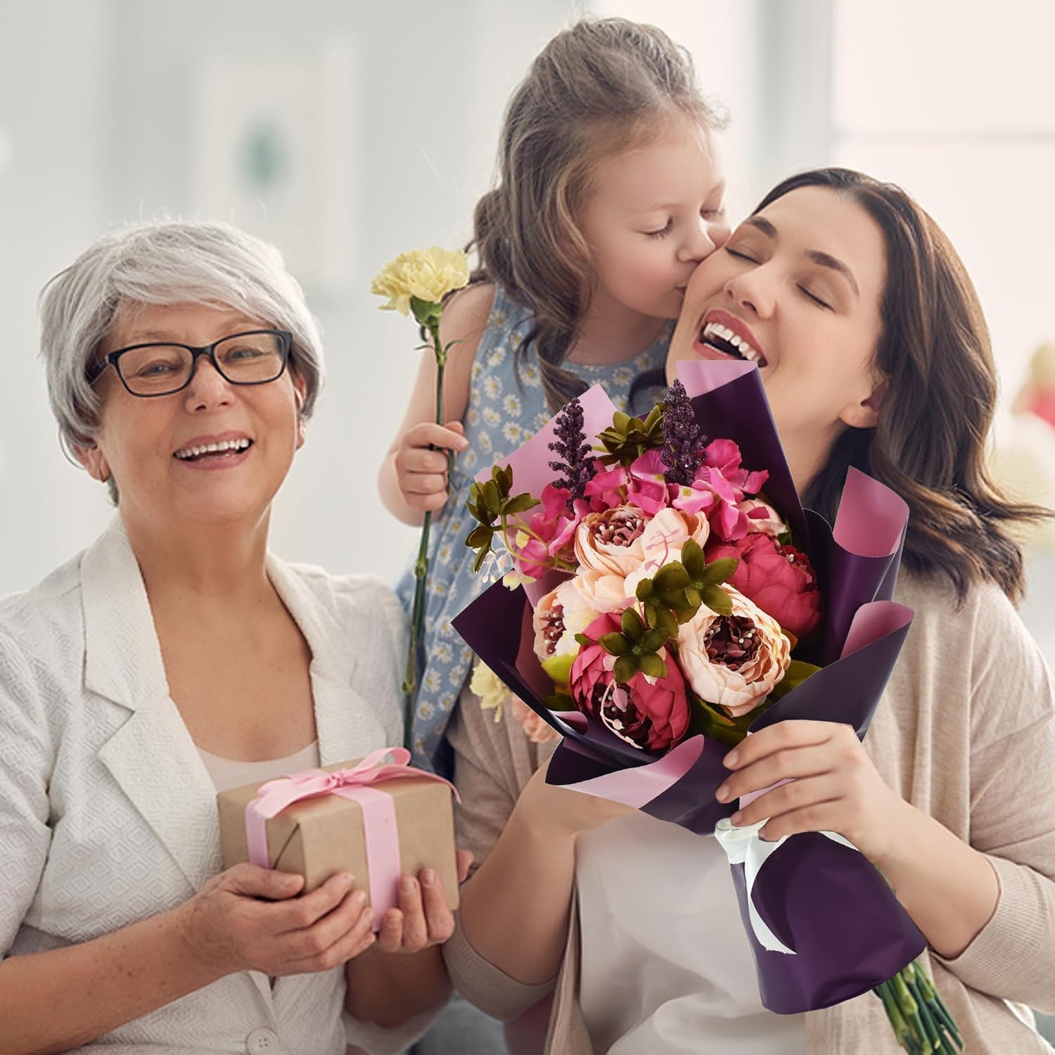 BEISHIDA 20Pcs Pink and Purple Double Sided Floral Wrapping Paper Matte Waterproof Flower Bouquet Wrapping Paper for Floral Wrap Florist Packing Supplies Birthday Valentine's Christmas Gift Wrapping