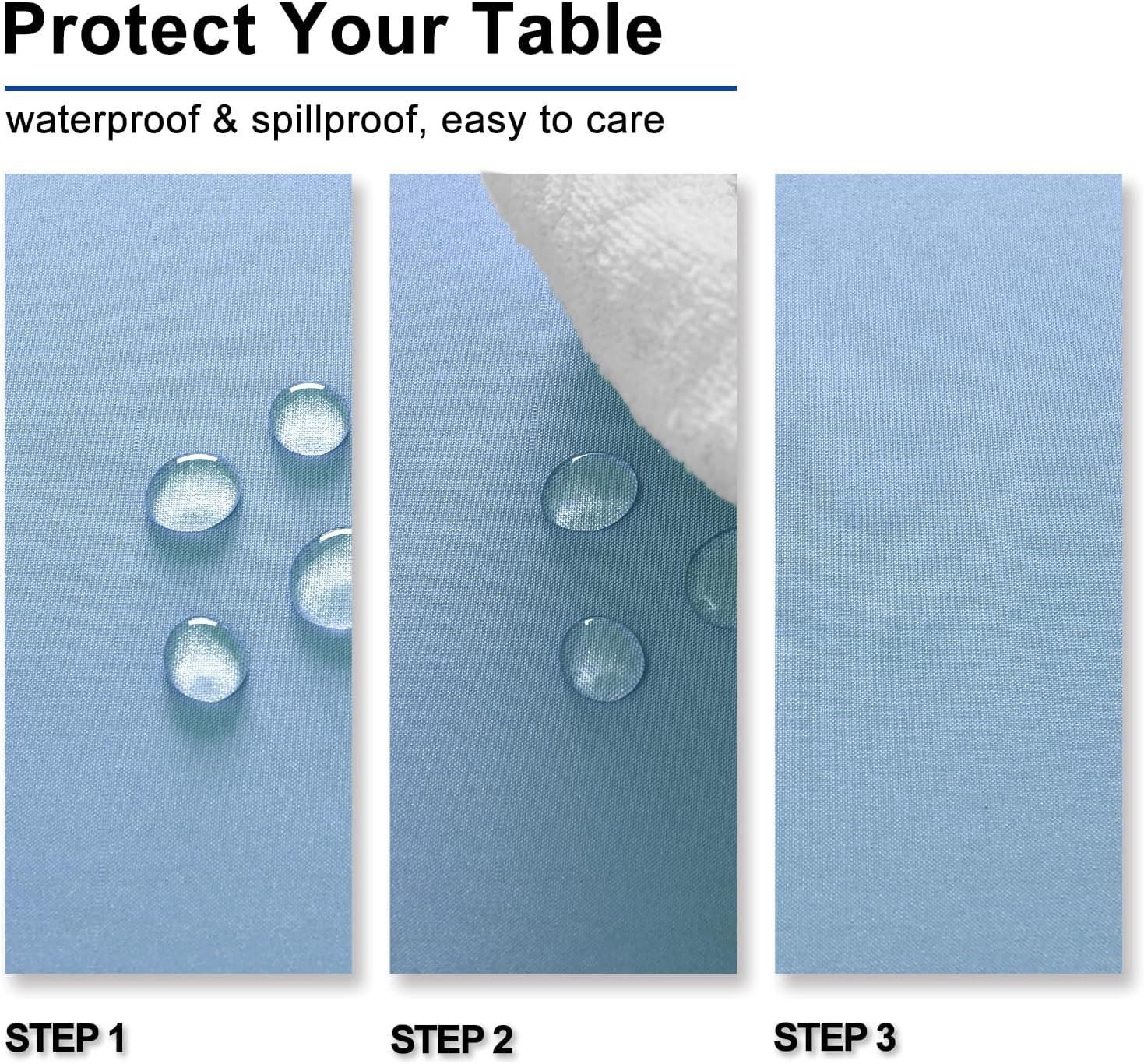 - Waterproof and Spill-proof Table Cloths: Featuring a fade and spill resistant polyester fabric, our tabletop covers easily protect your tables and furniture from scratches, stains and sun rays
