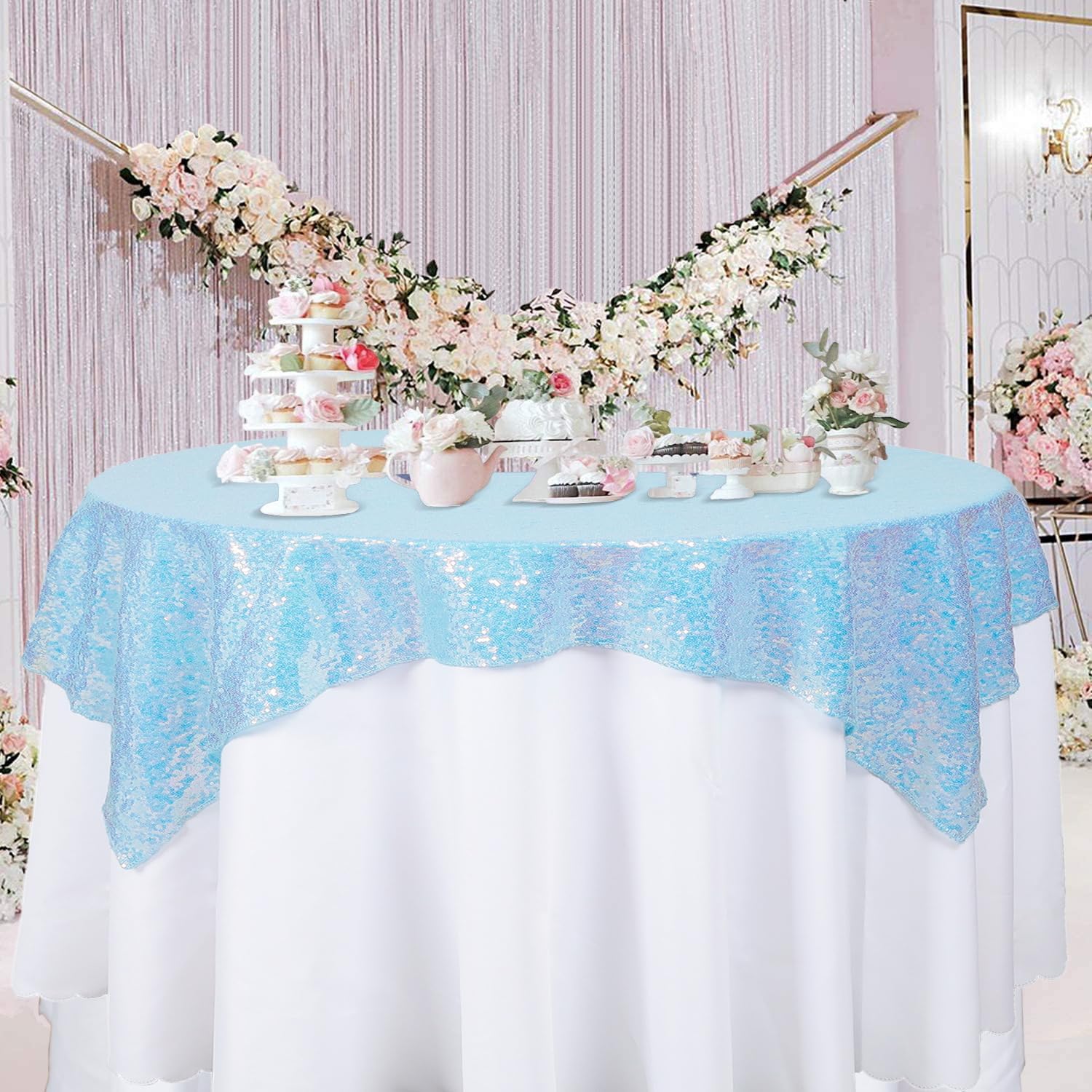 - ❤ SIZE OF SEQUIN TABLECLOTH : 1pc 54x54 Inch Iridescent Aqua Sequin Tablecloth Table Linen, this glitter table overlay is fit for a round/square table under 4FT.