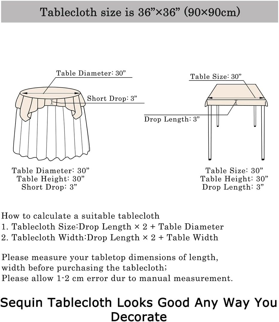 - ❤ SIZE OF SEQUIN TABLECLOTH : 1pc 36x36 Inch Iridescent Aqua Sequin Tablecloth Table Linen, this small square tablecloth is fit for small round tables under 36''