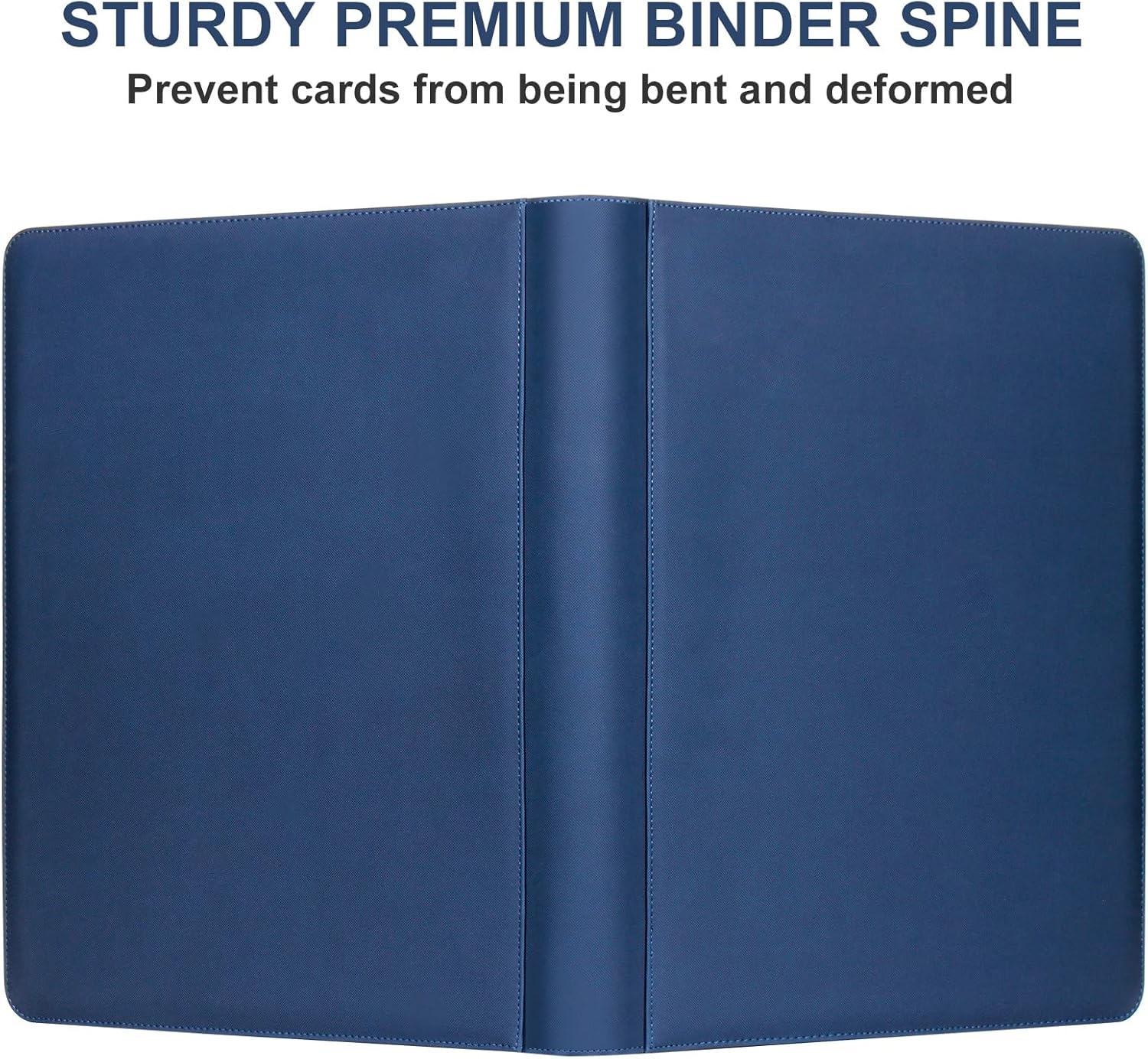 GEAoffice 16 Pockets Card Binder for 1000+ Cards, Premium Sturdy Card Holder Album, PU Cover Collection Binder for MTG, TCG, Game & Sports Cards, Navy Blue