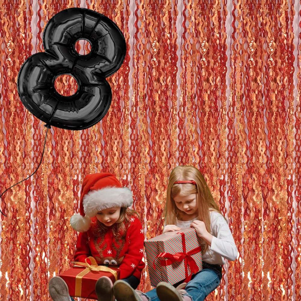 - Easy To Use:This orange foil backdrop comes with double sided tape on the back of them, what you need to do is just gently take it out of the package, peel the tape off then paste the fringe curtain on the top of wall or door