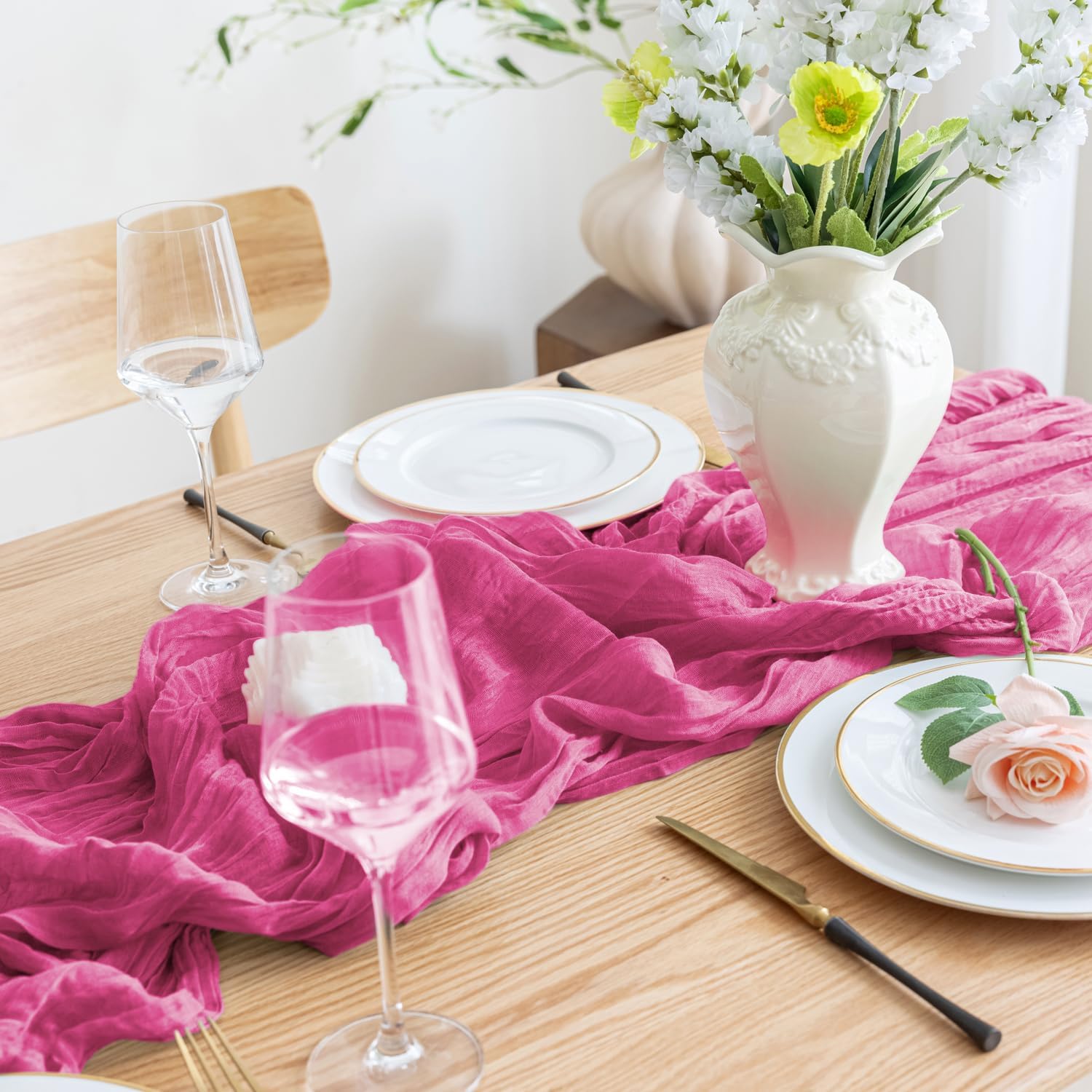 Asee'm 3pcs Cheesecloth Table Runner 120 Inches Long Deep Pink Boho Gauze Cheese Cloth Runner 10FT Rustic Sheer Table Runners for Christmas Wedding Party Baby Shower Spring Easter Decoration