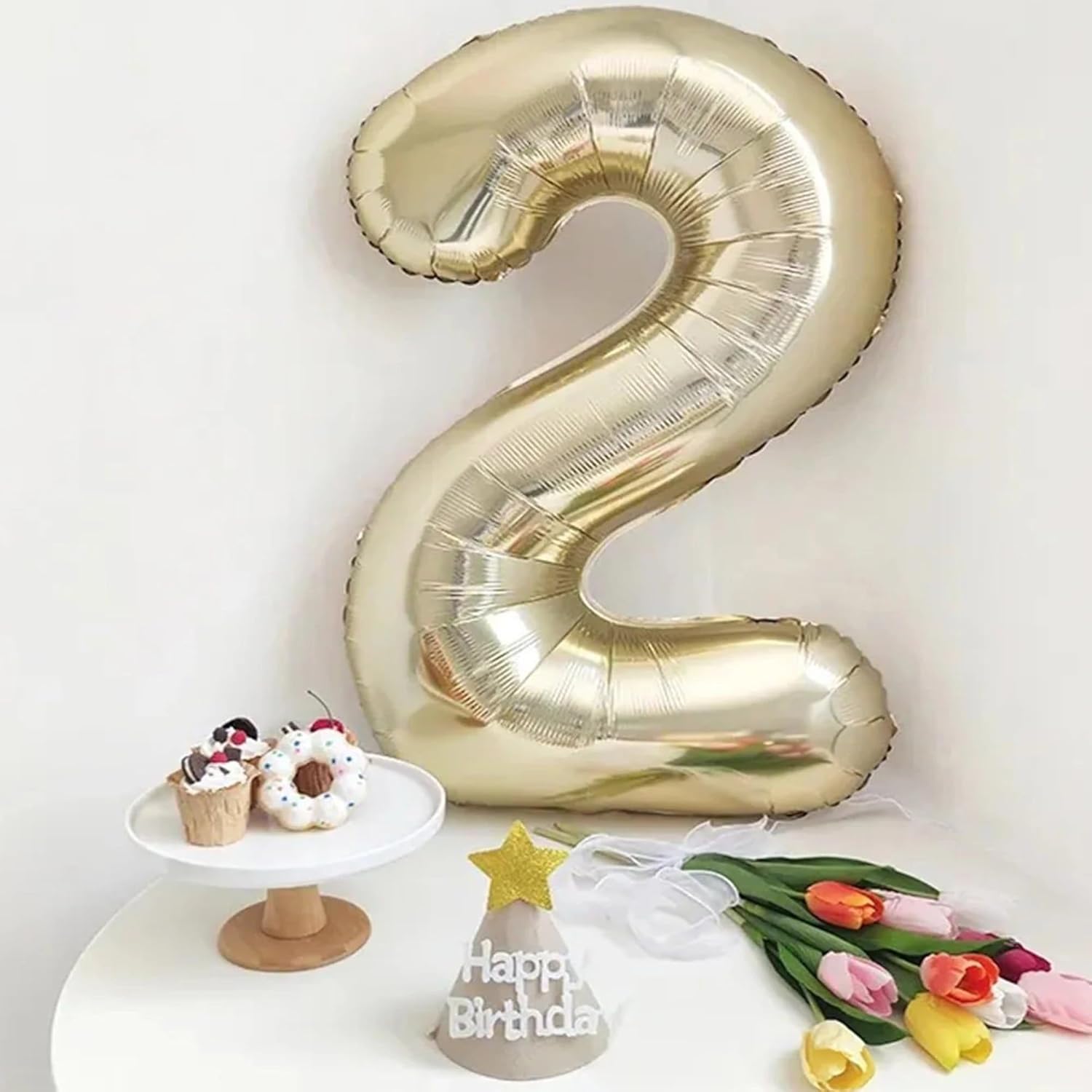 40 Inch Number 2 light gold Large Numbers Balloon 0-9 Birthday Party Decorations,Foil Mylar Big Number Balloon Digital 2 for Birthday Party Supplies Wedding Decorations(Number 2)