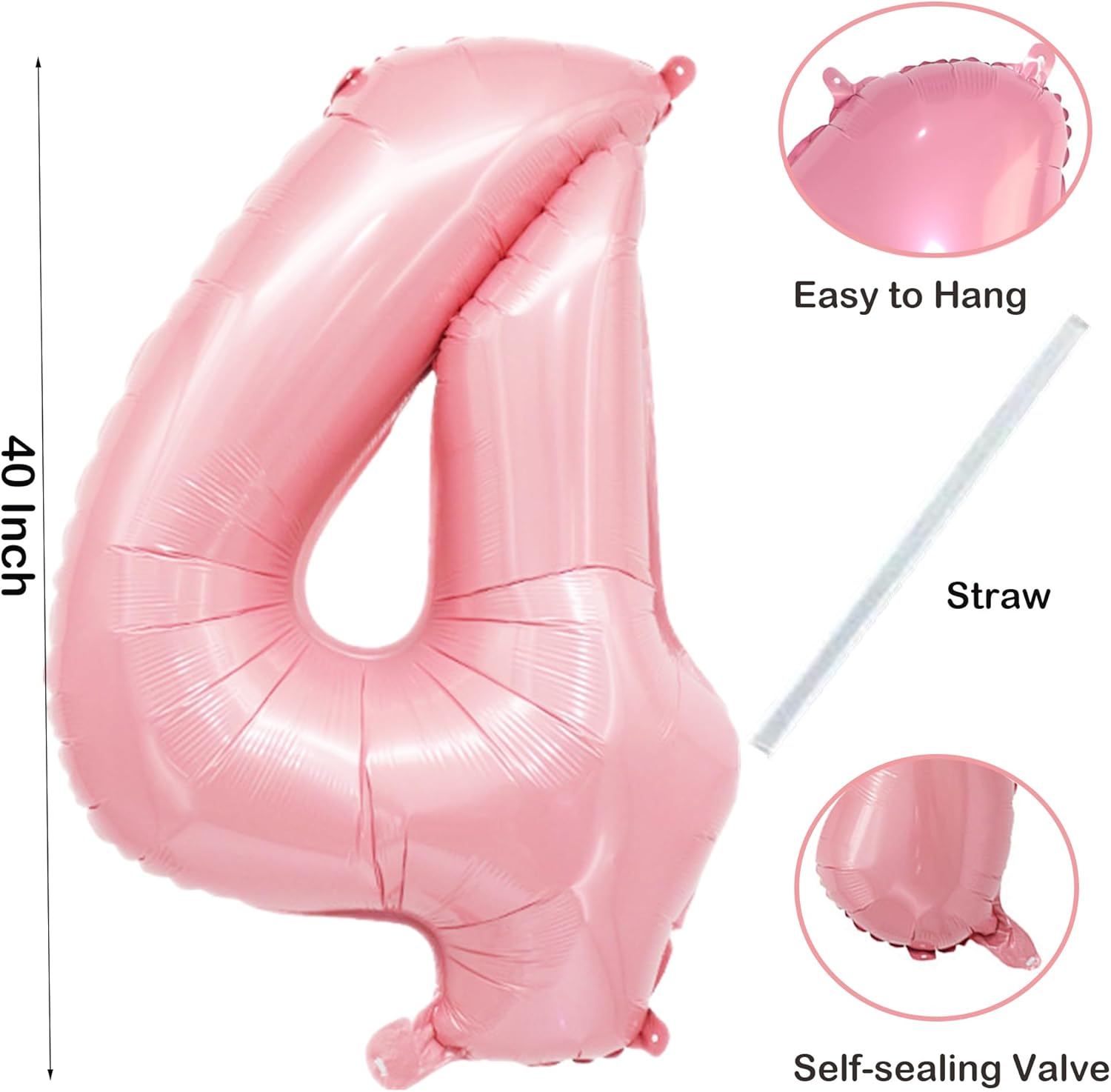- 【Exquisite Appearance】- This giant pink number 4 balloon can perfectly decorate your 4th 14th 24th 34th 40th 44th birthday party or other anniversary events, and is also a great photo prop