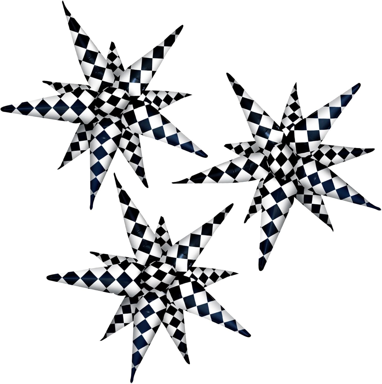 3pcs 26inch 3D Black White Explosion Star foil Balloon,Black White Foil Cone Starburst Balloons for Birthday Wedding New Year Party Event