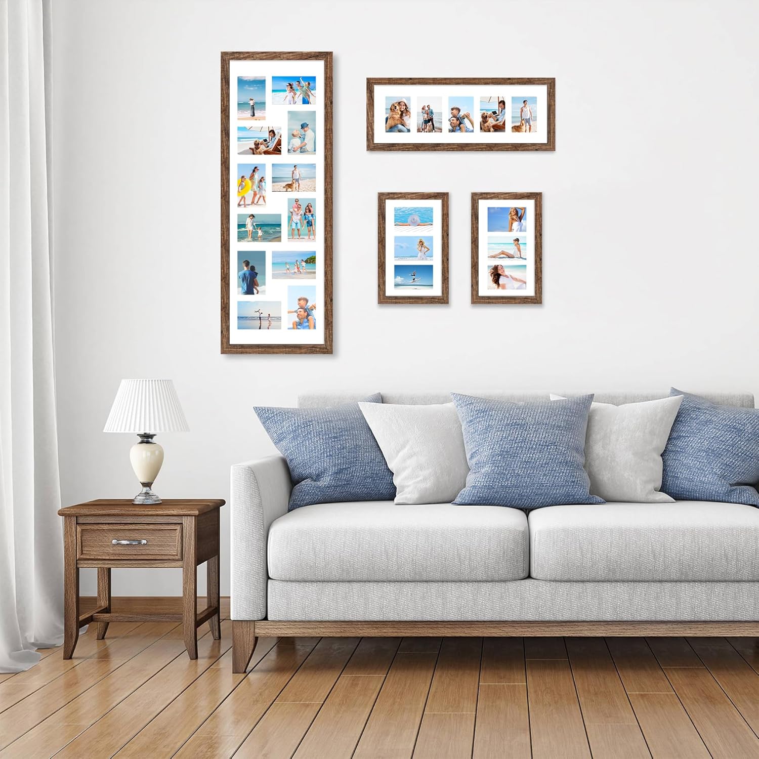 8x20 Picture Frame Set of 2, Rustic Brown Wood Frame with Tempered Glass Collage Frame, Display Pictures Four 4x6 With Mat or 8 x 20 Without Mat - Horizontal or Vertical Wall Mounting